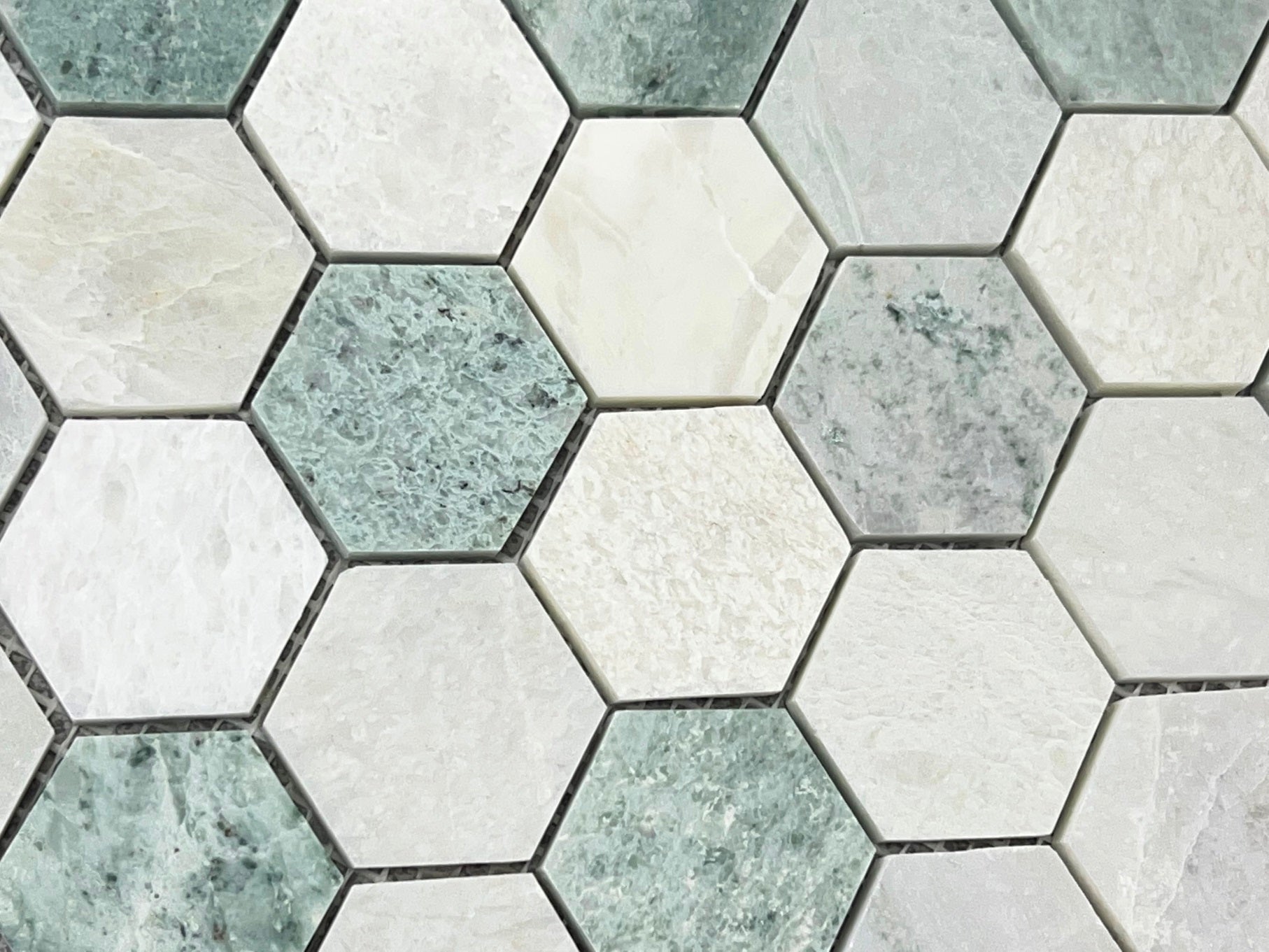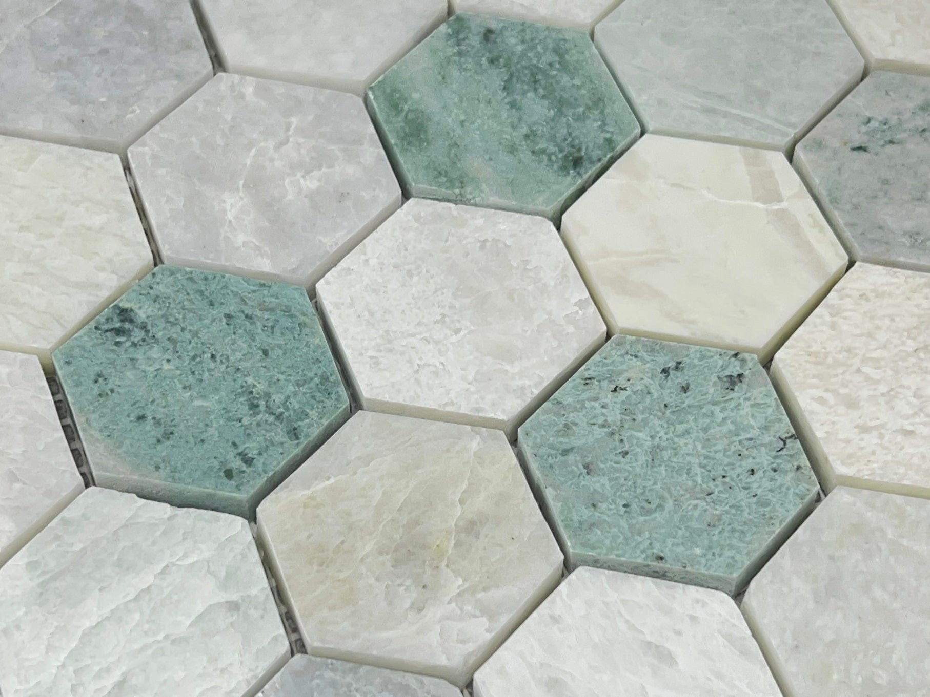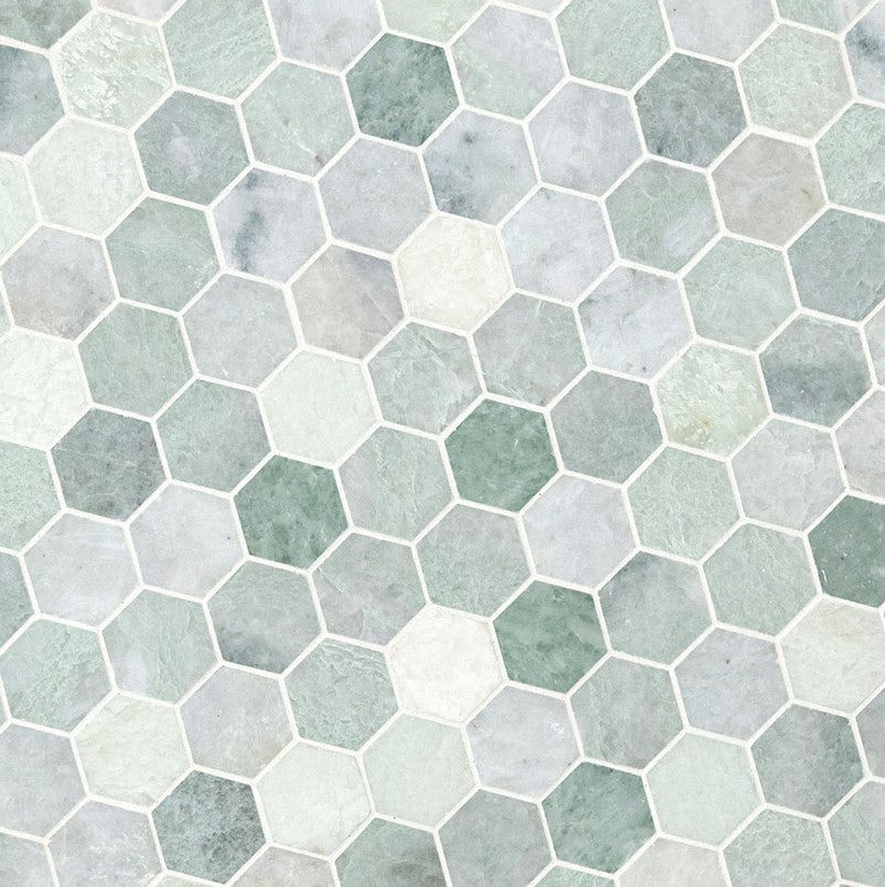 Ming Green 2 Inch Hexagon Polished Marble Mosaic Tile for Floor and Wall Tile, Shower Surrounds, Accent Walls, Kitchen Backsplashes, and Residential Uses