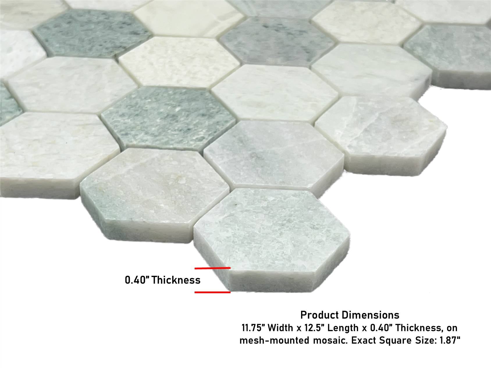 • Size sheet: 11.75" W x 12.5" L x 0.40" Thickness. Exact Hexagon size: 1.87".