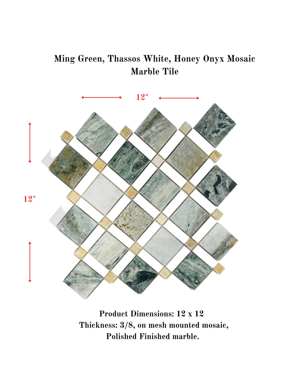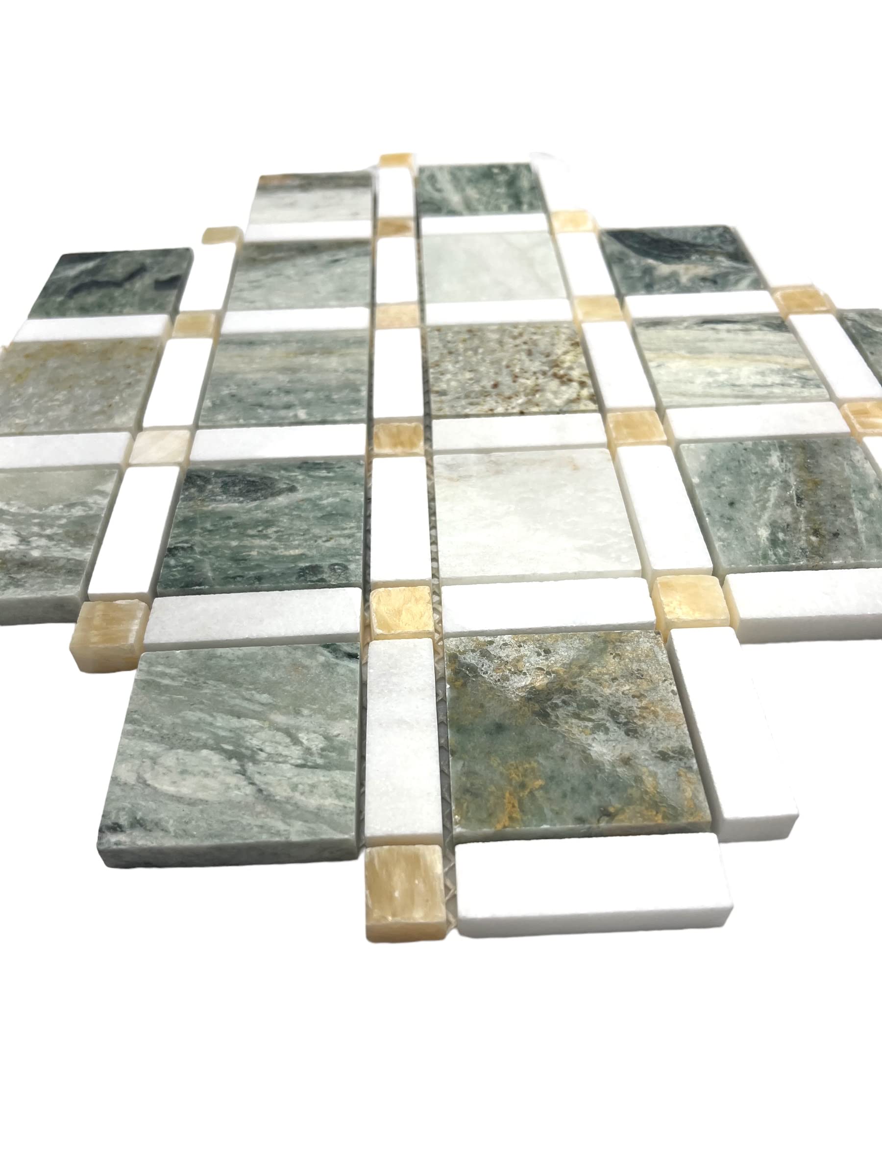 Ming Green, Thassos White, Honey Onyx Mosaic Bathroom Kitchen Backsplash Wall Tile