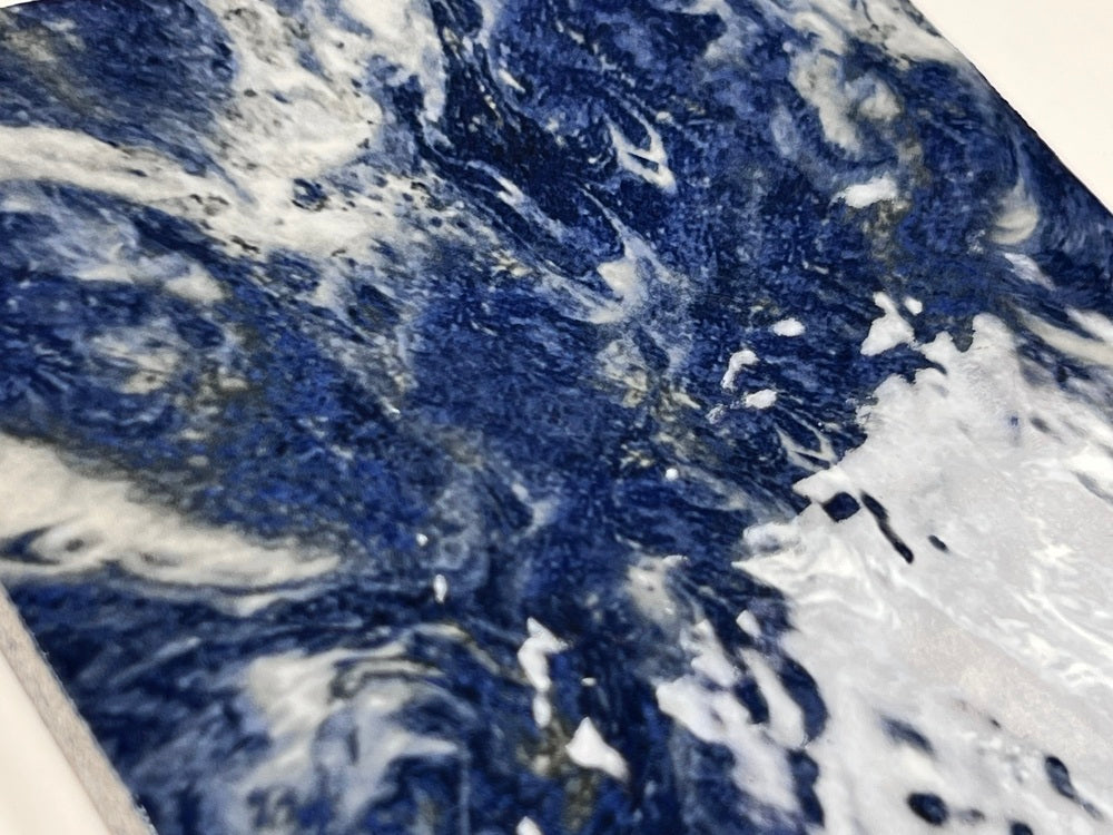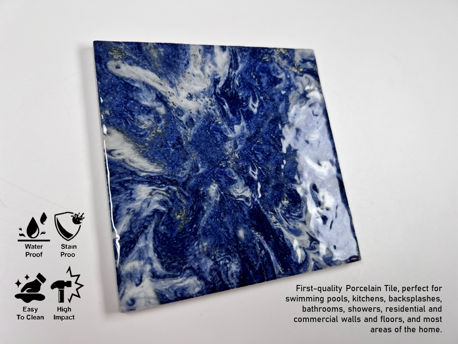 • Material: Porcelain - Color: Blue-White -Greyish; Finish: Textured - Glossy