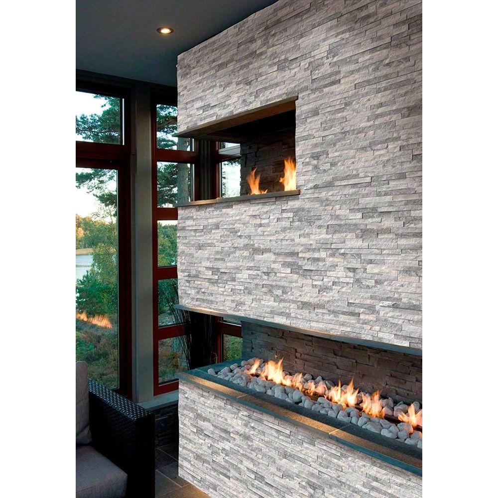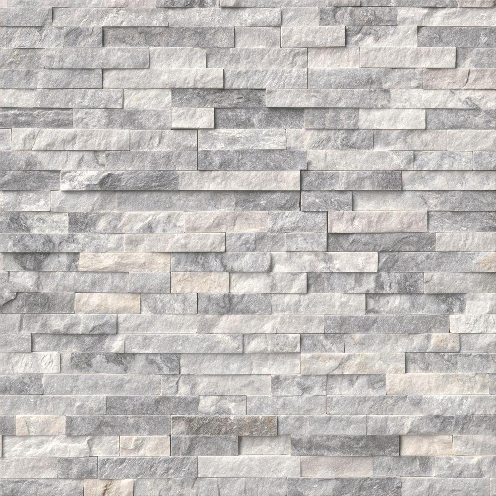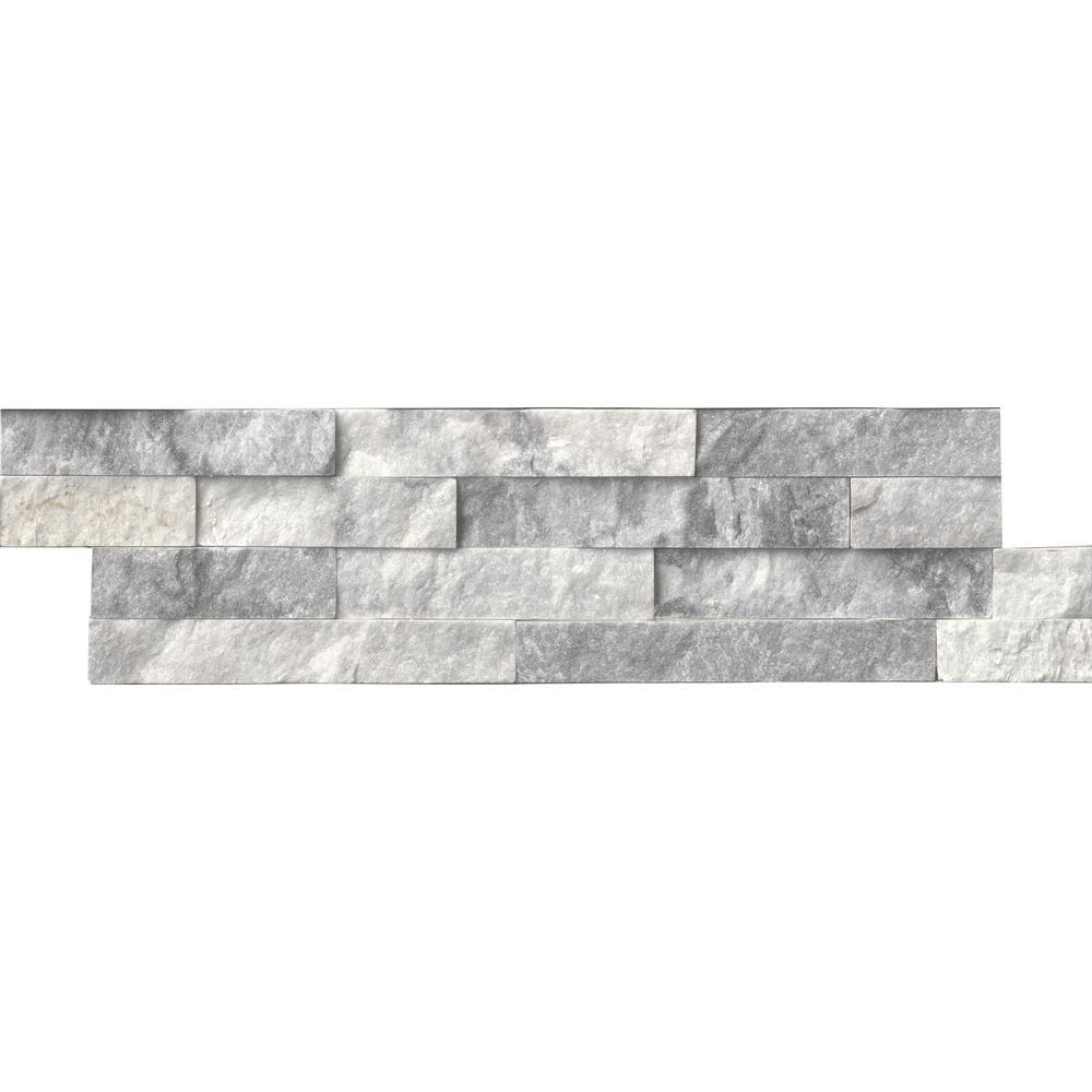 Alaska Gray Ledger Panel 6 in. x 24 in. Wall Tile is a Natural Stone Marble with a blend of contemporary gray tones. The tile features random strips of stacked stone glued together for ease of installation. Each piece has an S-shaped end that helps interlock the pieces and enhance the random look. This tile can easily be laid in a pattern or single layout and is suitable for residential and commercial installations.