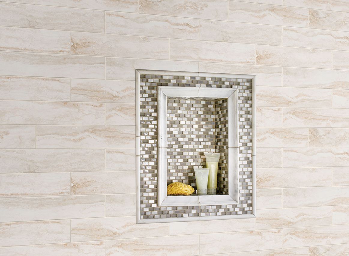 MS International Bernini Bianco 4. x 18 in. Porcelain Tile makes a distinctive design statement with its unique vein cut travertine look and fossilized veining in the most desired whites, creams and warm grays hues. Durable and easy to care for, you can count on this gorgeous matte tile to bring a touch of artistic style to your home whether it’s used for wall tile or to create backsplashes, countertops and more. Installed floor-to-ceiling in the bathroom, Bernini Bianco Porcelain Tile harmonizes and visually expands the space - and it’s equally appealing as a shower surround. Long-lasting and multitalented, this travertine look tile is also suitable for light-duty commercial projects. This is a rectified tile, mechanically finished on all sides to achieve uniformity. Its precise sizing allows for a thinner grout joint, which results in a clean, professional install and reduces staining issues. Multiple tile sizes and accessories are available to give your project a finished look.