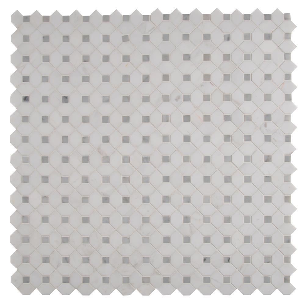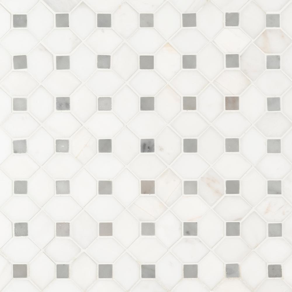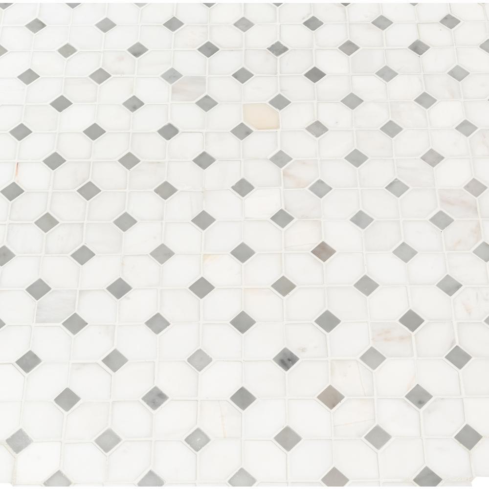 MS International’s Bianco Dolomite Dotty Polished Patterned Mosaic Tile is a premium Turkish marble featuring a white base with smooth gray veining and a modern geometric design. Each 12.31" x 12.36" mesh-mounted sheet is 10 mm thick, polished to a high sheen, and offers random natural variation in tone. Ideal for kitchen backsplashes, shower surrounds, bathroom walls, fireplaces, accent walls, and light-use commercial spaces.