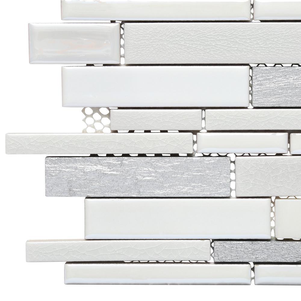 Add a splash of chic styling to your decor with Everest Interlocking Porcelain Stone Blend Mosaic Wall Tile. A seemingly random blend of stone and tile strips forms this 12 in. x 12 in. mesh-mounted mosaic, infusing your space with a sharp look and contemporary flair. The mixed-sheen, mixed-finished tiles from MS International add definition to any residential or commercial expanse and are versatile enough to be used outside or on a fireplace surround. Boasting natural white marble interspersed with crackly porcelain chips, they look particularly stunning as kitchen backsplash or bath wall, and also work splendidly as a countertop surface or accent band.