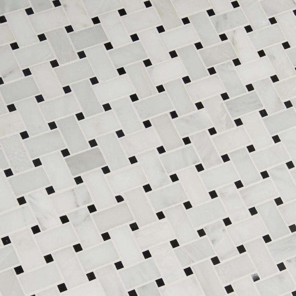 Add a splash of modern styling to your decor with Greecian White Basketweave Mosaic Tile. Natural white polished marble in a basketweave pattern forms this 12 in. x 12 in. mesh-mounted tile, infusing your space with a chic look and a contemporary ambience. The low-sheen, honed-finished tiles from MS International will invigorate any residential or commercial setting and are versatile enough to be used outside or on a fireplace surround. They look particularly stunning as shower wall or kitchen backsplash, and also display fabulously on a feature wall. Note: Inspect all tiles before installation. Natural stone products inherently lack uniformity and are subject to variation in color, shade, finish, etc. It is recommended to blend tiles from different boxes when installing. Natural stones may be characterized by dry seams and pits that are often filled. The filling can work its way out and it may be necessary to refill these voids as part of a normal maintenance procedure. All natural stone products should be sealed with a penetrating sealer. After installation, vendor disclaims any liabilities.