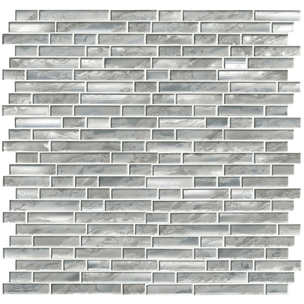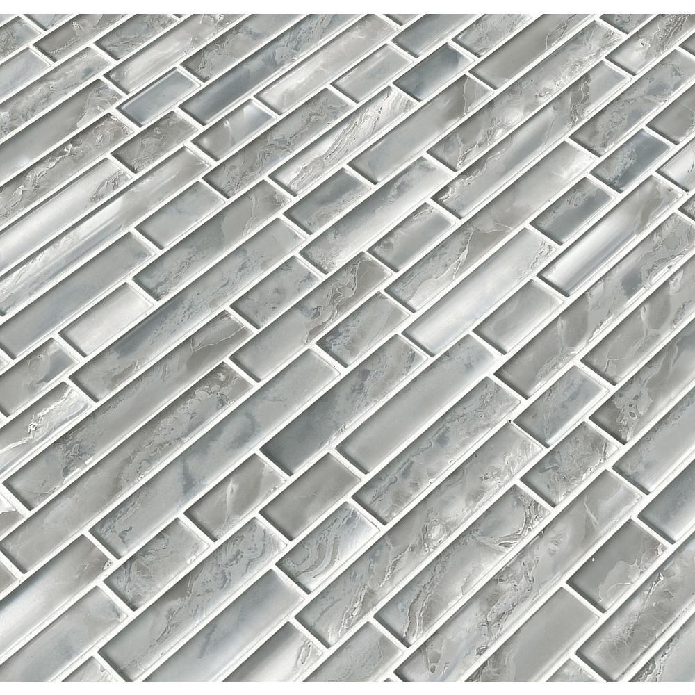 With the MS International Silver Canvas Interlocking Glass Wall Tile, it's easy to add a splash of contemporary styling to your decor. This attractive tile features a seemingly random arrangement of tile strips on a 12 in. x 12 in. mesh sheet that makes installation a much easier process. Constructed from durable, frost-resistant glass material, this tile is suitable for installation on walls and countertops. The attractive combination of elegant white tones, an unglazed, smooth finish, a high sheen and subtle variations in tone makes a perfect complement for a wide variety of design schemes.
