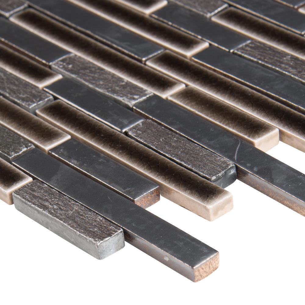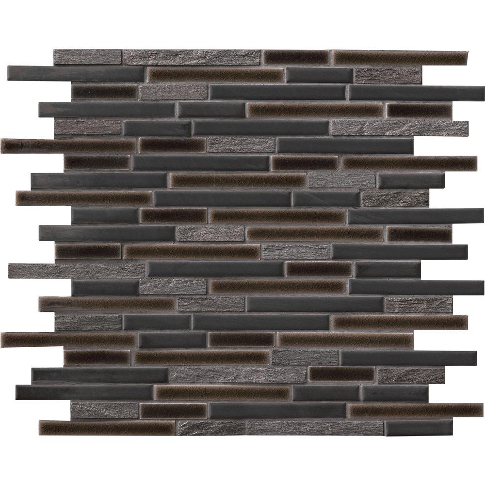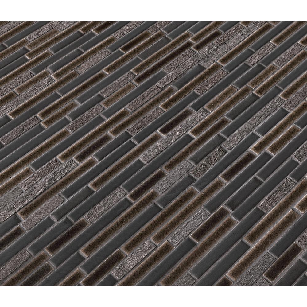 Add a splash of modern styling to your decor with Titan Interlocking Mosaic Tile. A seemingly random blend of black/gray porcelain and stone strips forms this 12 in. x 12 in. mesh-mounted tile, infusing your space with a clean look and a contemporary ambience. The mixed-sheen, mixed-finish tiles from MS International will invigorate any residential or commercial setting and are versatile enough to be used outside or on a fireplace surround. They look particularly ravishing as kitchen backsplash or bath wall and also work stunningly as a countertop surface or feature wall.