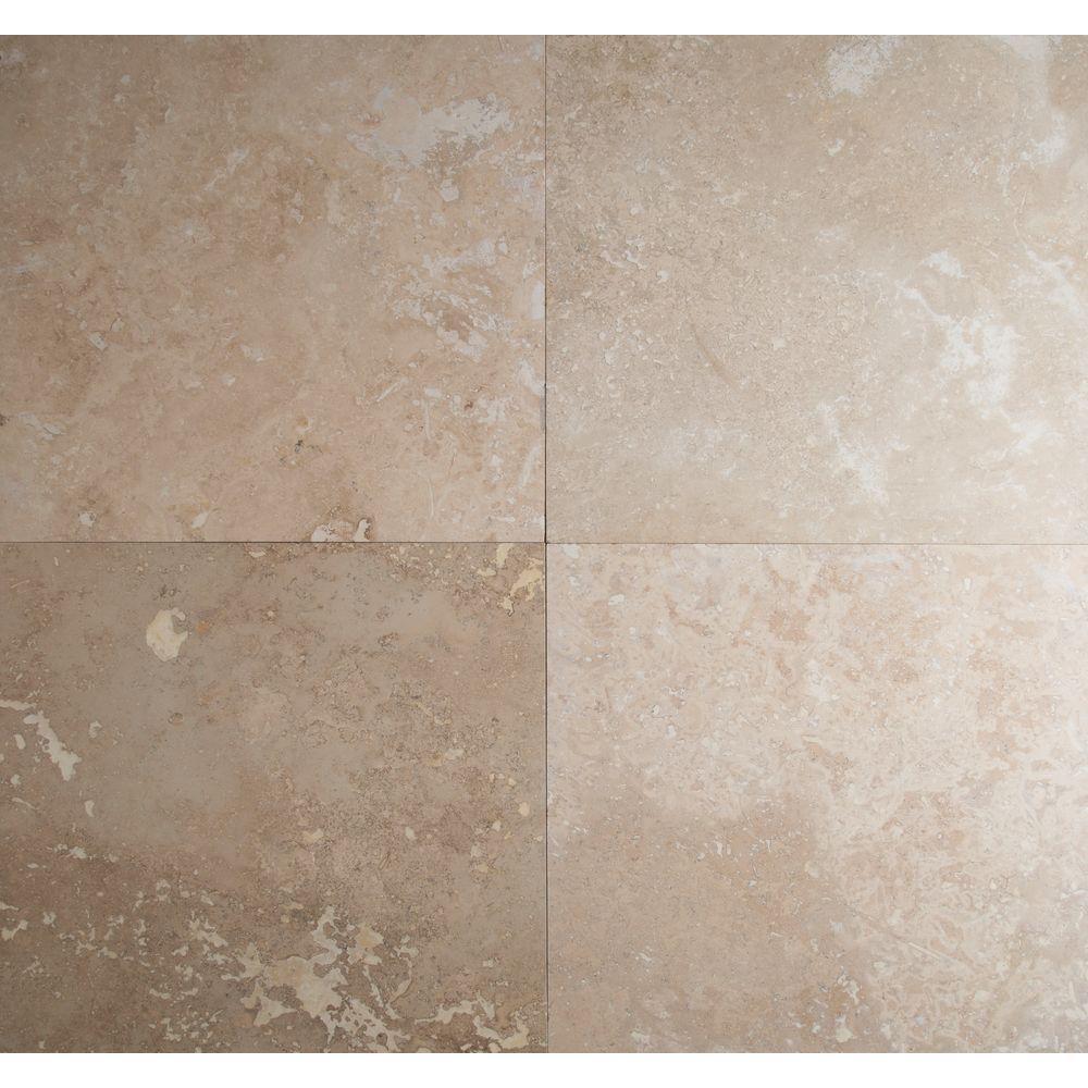 This pallet includes kit (16 sq. ft. ) with rectangular and square tiles that combine to create a Versailles pattern. With a chipped edge, the travertine floor and wall tile provides a rustic, aged look that blends with the surroundings to create an old-world aesthetic.