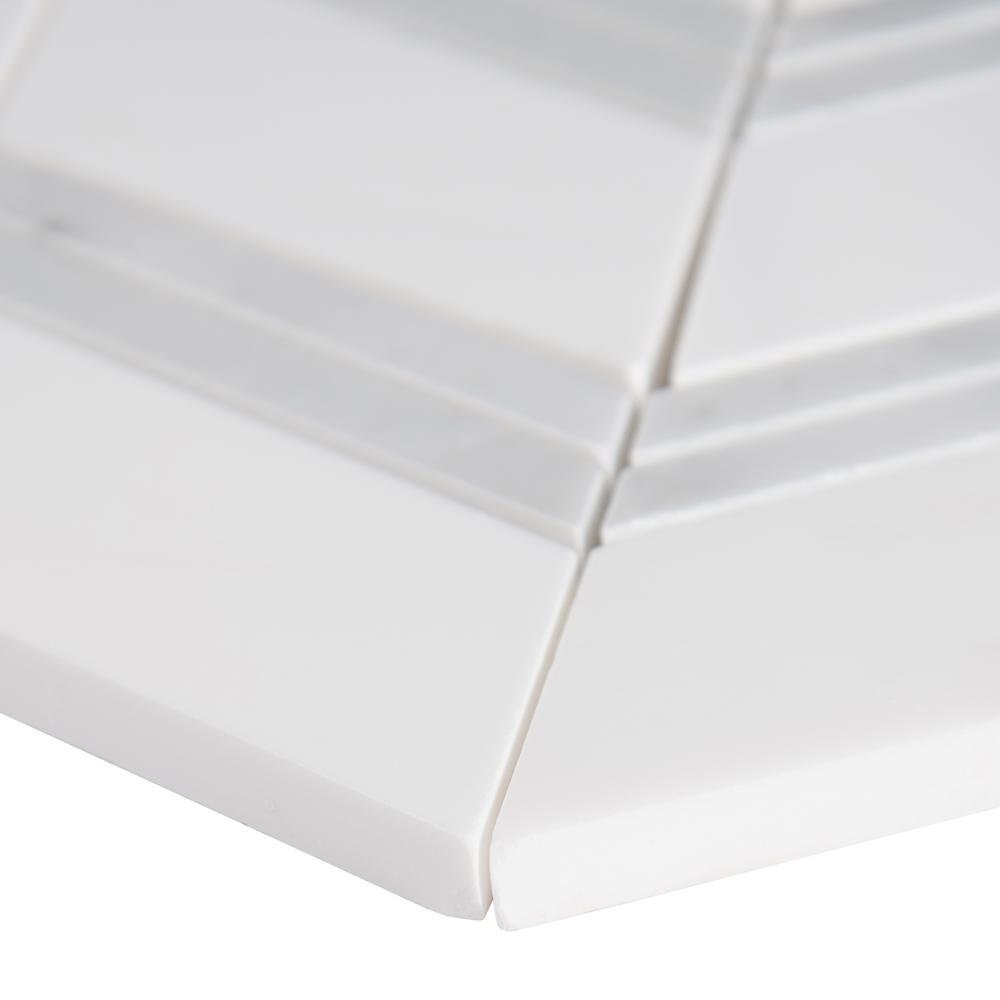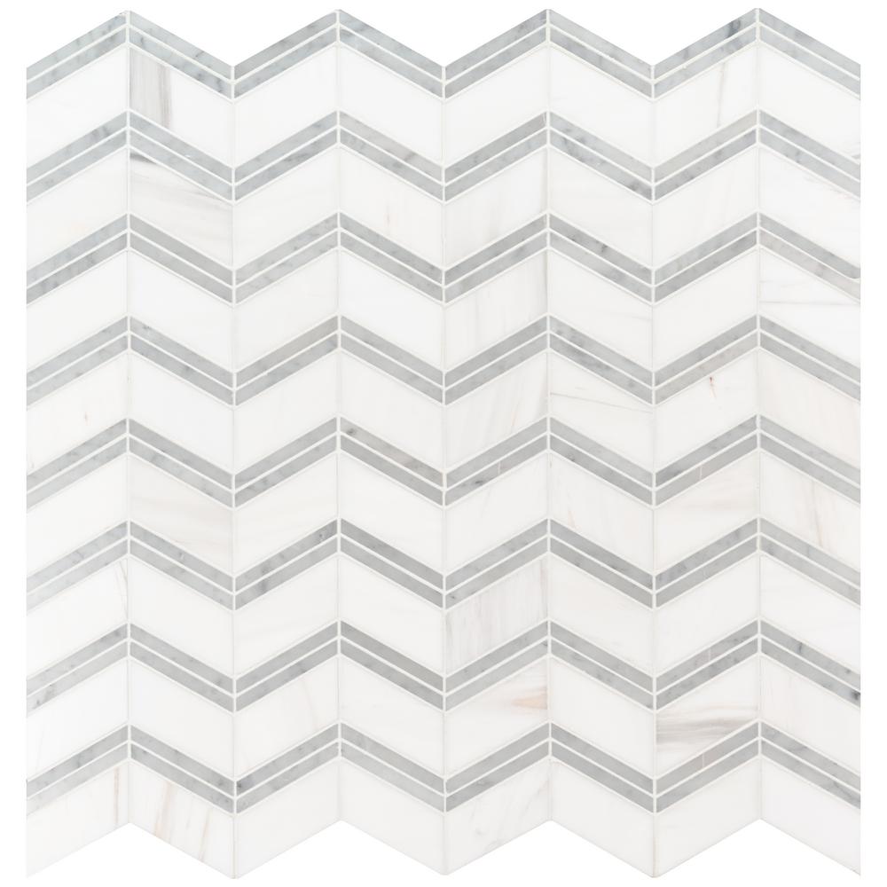 MSIs Bianco Dolomite Chevron Polished Patterned Mosaic Tile is classic a Turkish marble with a modern edge featuring distinctive, smooth grey veining. It’s ideal for creating beautiful kitchen backsplash, shower surrounds, accent walls, and other design features throughout homes and light use commercial properties. The timeless shape and color of this patterned marble mosaic make it exceedingly versatile complementing traditional to contemporary design styles. Pair it with a Bianco Dolomite countertop or other mosaics from the collection for a style-savvy cohesive look or use it alone to add a touch of unexpected detail and interest to any space. Tiles are prearranged on 12 in. x 12 in. mesh-backed sheets for simplified installation and coordinating moldings give your project a professional look.