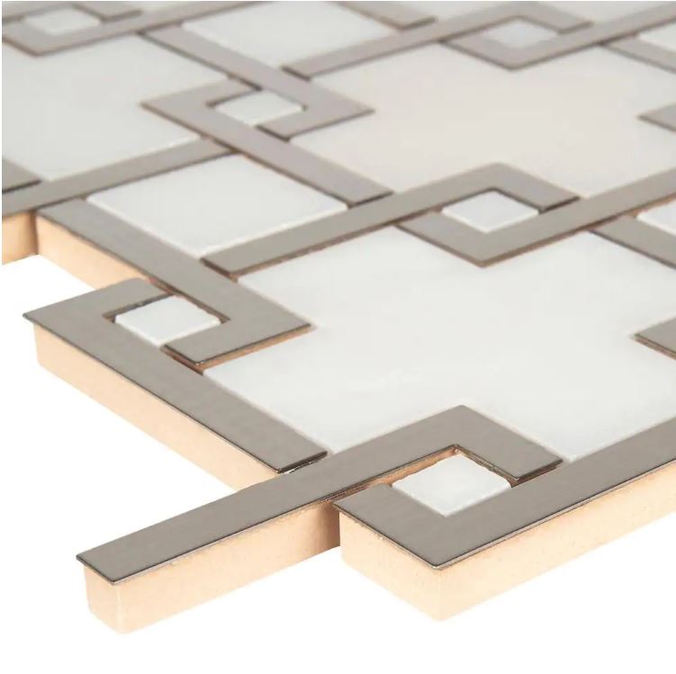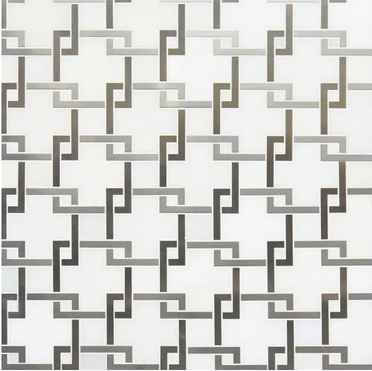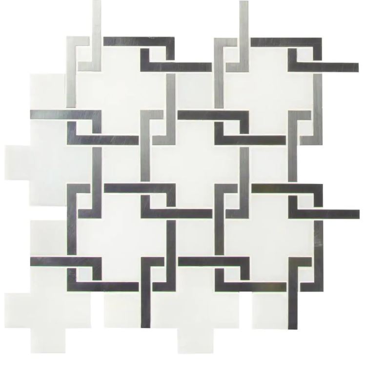 It features unique styled pieces of polished white Italian marble, lending an upscale look and contemporary flair to any interior expanse. The high-sheen, smooth-finished genuine stone chips are perfectly arranged on a 10.47 in. x 10.4 in. mesh-backed mosaic.