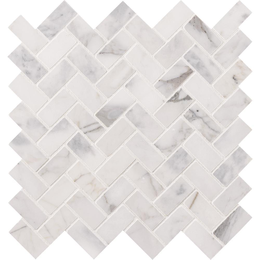 MSI Calacatta Cressa Herringbone 12 in. x 12 in. x 10mm Honed Marble Mesh-Mounted Mosaic Tile