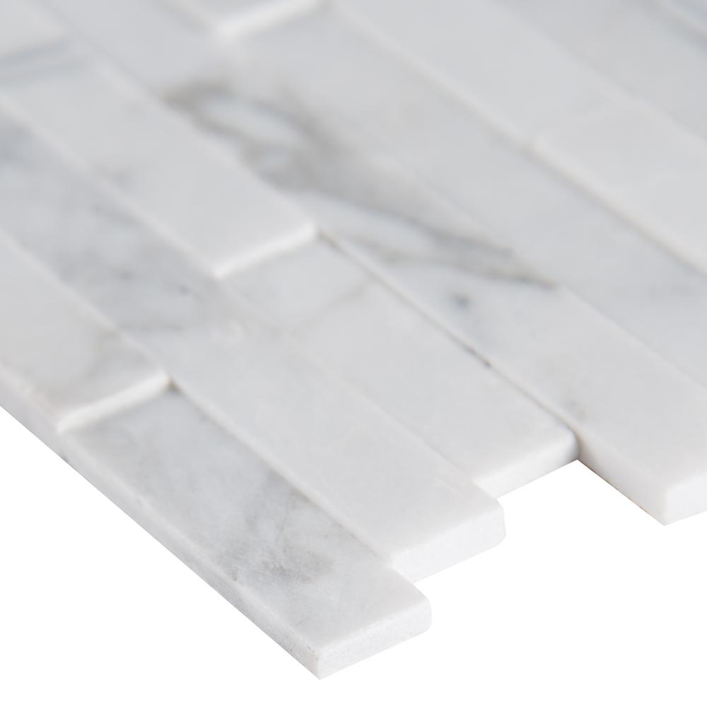 MSIs Calacatta Marbella Interlocking 3D STIK Wall-Tile enhances your space with timeless elegance. These genuine honed marble mosaic tiles with a peel and stick backing are a breeze to install no grout or thinset is required. A DIY dream come true, theyre perfect for refreshing kitchen backsplashes, creating bedroom accents walls and even updating bookshelf insets quickly, affordably and easily. With its heavy-duty adhesive, STIK Wall-Tile stands the test of time even in the busiest homes and light commercial environments. Achieve a designer look at a fraction of the cost with this stylish self-adhesive backsplash tile.