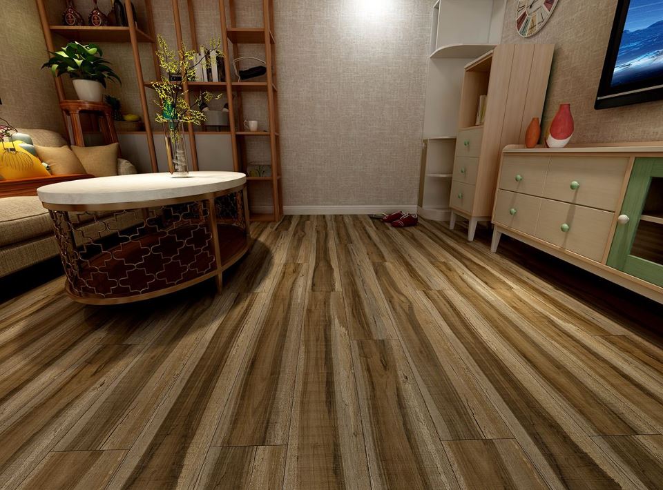 This low-maintenance vinyl plank features a palette of subtle gray tones with realistic knots and graining slight saw marks for an authentic hand-hewn wood look. It measures 6.5 mm. thick and is water, scratch, stain and dent resistant.