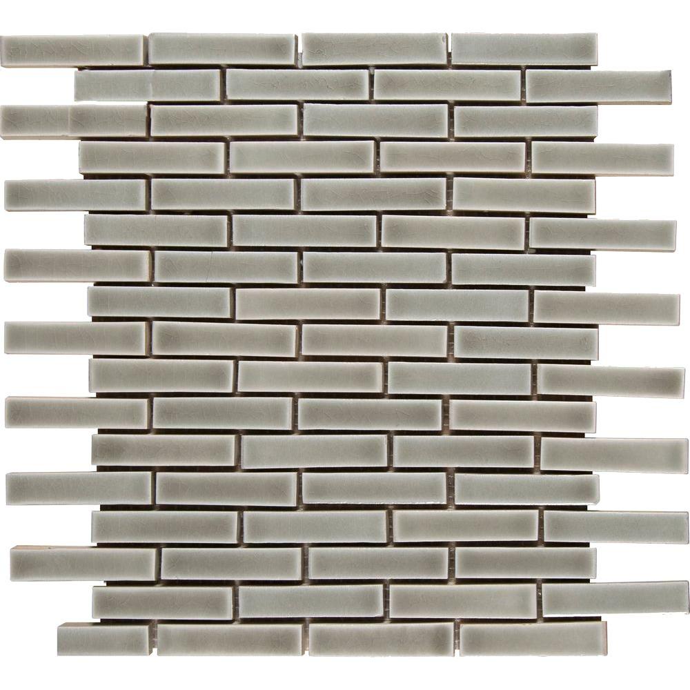 With the MSI 12 in. x 12 in. Dove Gray Ceramic Mosaic Wall Tile, it's easy to add a splash of contemporary styling to your decor. This attractive tile features 5/8 in. x 2-3/4 in. strips of ceramic arranged in a brick pattern on a 12 in. x 12 in. mesh sheet that makes installation a much easier process. Trendy gray shades featuring a crackled look, this glossy ceramic creates a distinct pattern for various install projects in bathrooms, kitchens and other residential or commercial spaces.