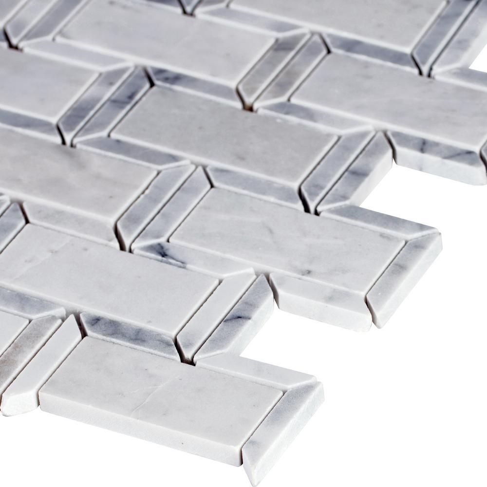 The Framework Polished Marble Mesh-Mounted Mosaic Wall Tile has a soft white color with gray veining and a smooth, polished finish. The 2 in. x 4 in. brick pieces are fashioned with beveled edges on 12 in. x 13.19 in. mesh sheet to add definition to any residential or commercial expanse, certain to infuse your space with visual allure. Boasting random tone variations for extra character, they look particularly stunning as kitchen backsplash or tub/shower surround and also perform splendidly as an accent panel or countertop surface.