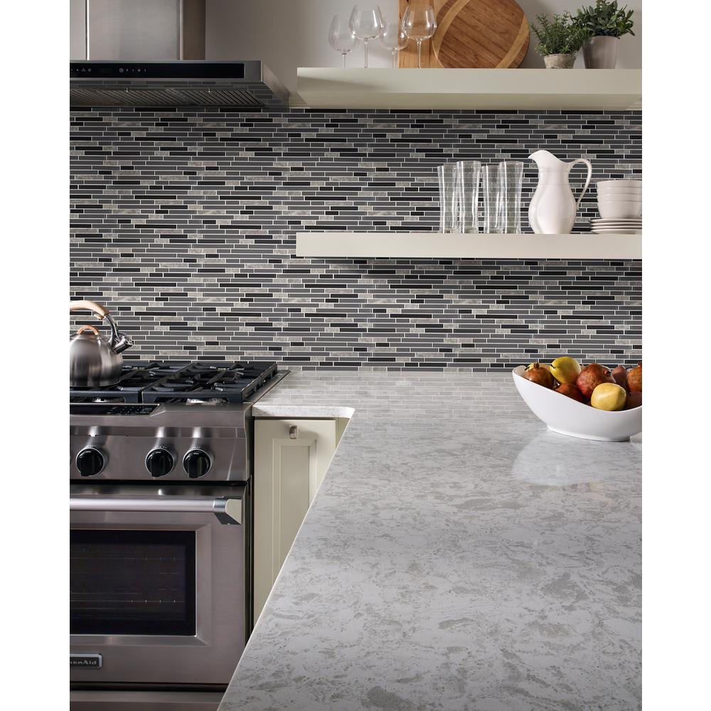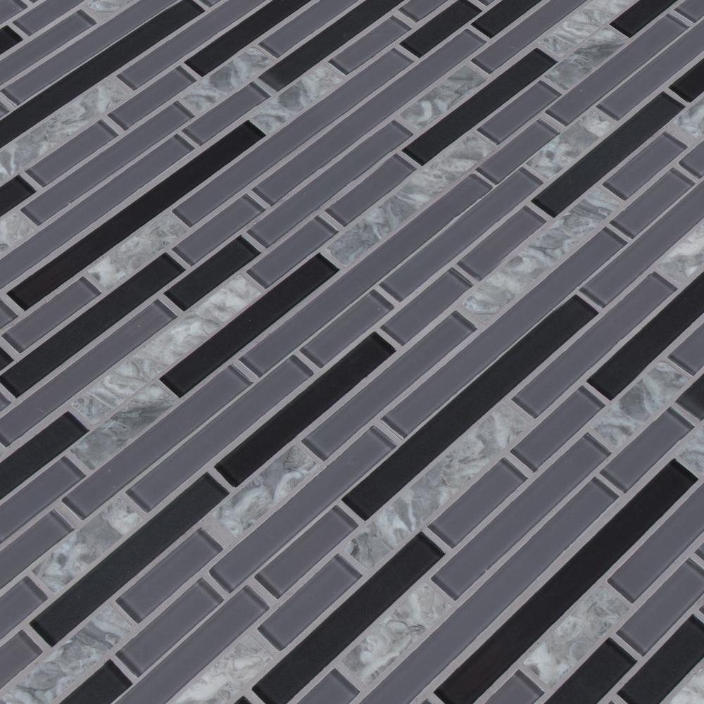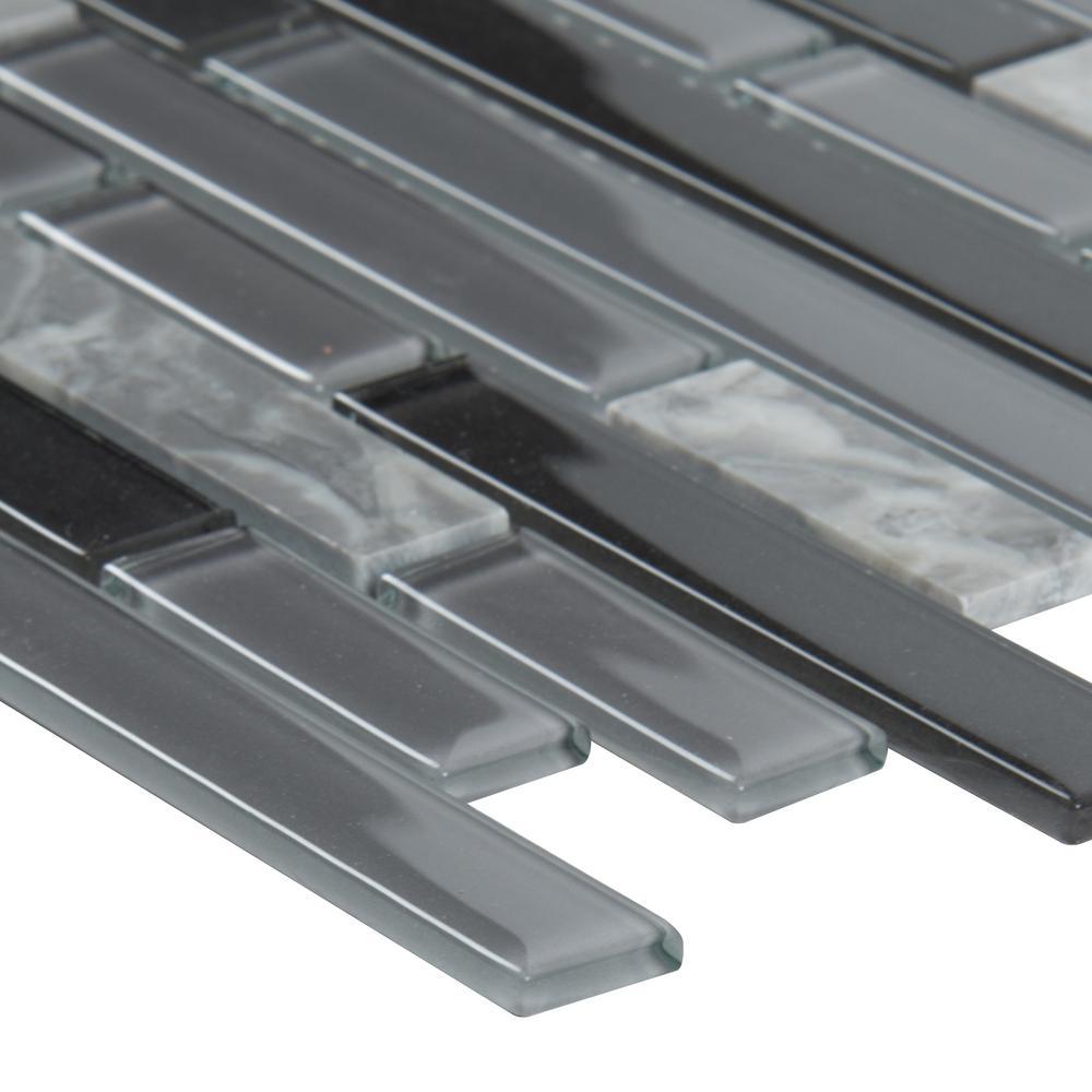 MSI's Lorena Grigio Interlocking 4mm Glass Stone Blend Mosaic Tile strikes the perfect balance between traditional and contemporary with neutral colorways of gray, black and white. Durable, low-maintenance and highly versatile, there’s no better way to give your residential or light use commercial space a touch of timeless luxury. The long, linear look of these tiles visually enlarges even the smallest of spaces, while light reflects of the glass for added interest. It’s perfectly suited for a kitchen backsplash, but why stop there? You can also use it on countertops, accent walls, or to give a nook distinct personality. The truth is, wherever you choose to use this gorgeous glass stone blend mosaic, the compliments are sure to follow. Tiles are mounted on mesh-backed sheets for a simplified installation that yields a professional look.
