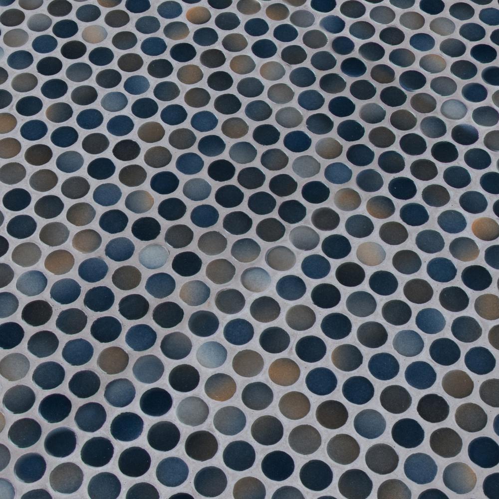 MSI's Penny Round Azul Glazed Porcelain Mosaic Tiles are retro with a refreshing modern edge. Their timeless shape and handsome blue color make them exceedingly versatile - complementing traditional to contemporary design styles. Pair them with large format porcelain tiles for a style-savvy cohesive look or use them alone to add detail and interest to residential floors, walls, counters or backsplashes. The choice is yours and the possibilities are endless. Incredibly durable and easy to care for, this high sheen tile is also recommended for some light commercial and heavy commercial applications, including walls and backsplash. Tiles are prearranged on mesh-backed sheets for simplified installation.