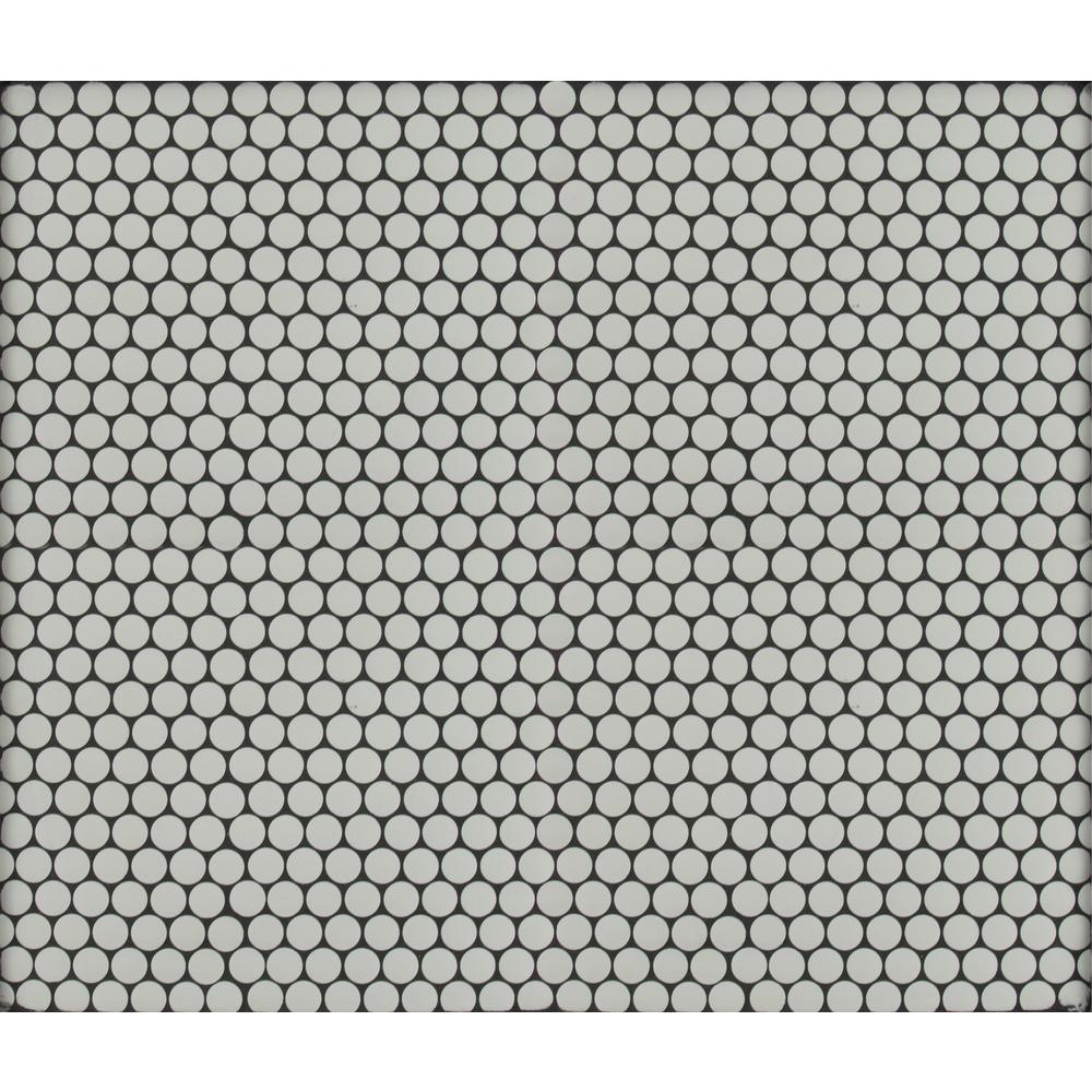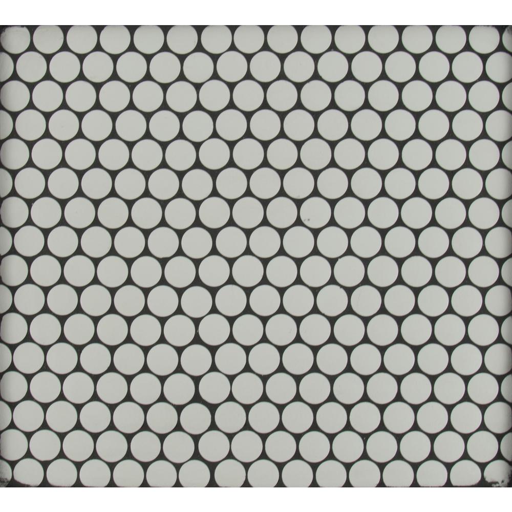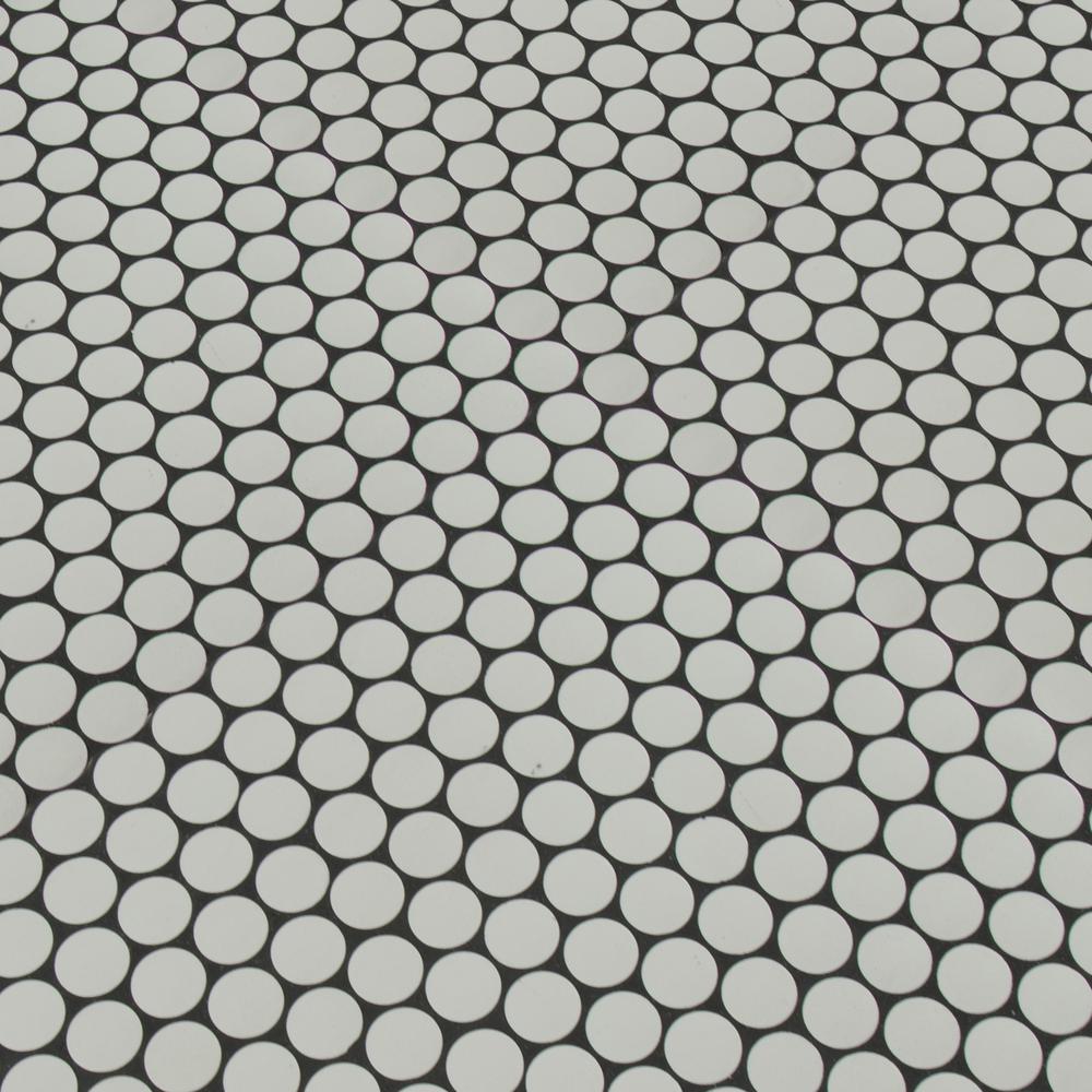 MSI's Penny Round Bianco Glazed Ceramic Mosaic Tiles are retro with a refreshing modern edge. Their timeless shape and elegant white color make them exceedingly versatile - complementing traditional to contemporary design styles. Pair them with large format ceramic tiles for a style-savvy cohesive look or use them alone to add detail and interest to residential floors, walls, counters or backsplashes. The choice is yours and the possibilities are endless. Incredibly durable and easy to care for, this high sheen tile is also recommended for some light commercial, including walls and backsplash. Tiles are prearranged on mesh-backed sheets for simplified installation.