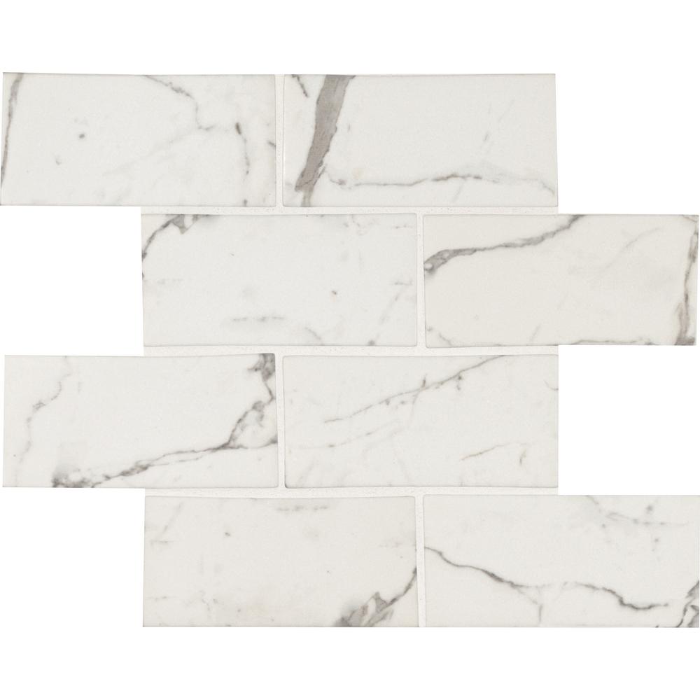 MSI’s Statuario Celano 3 in. X 6 in. Recycled Glass Subway Tile features a soft white background with gorgeous gray veining.