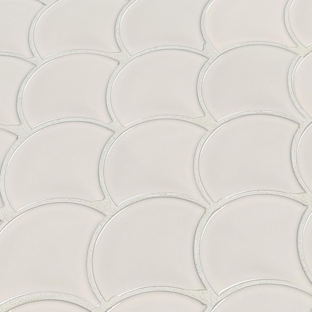 Mix and match white Glossy Fish Scale tiles with other tiles from MSI’s Domino Collection for easy to achieve designer looks. These tiles are mounted on mesh-backed sheets for simplified installation and a professional finish.
