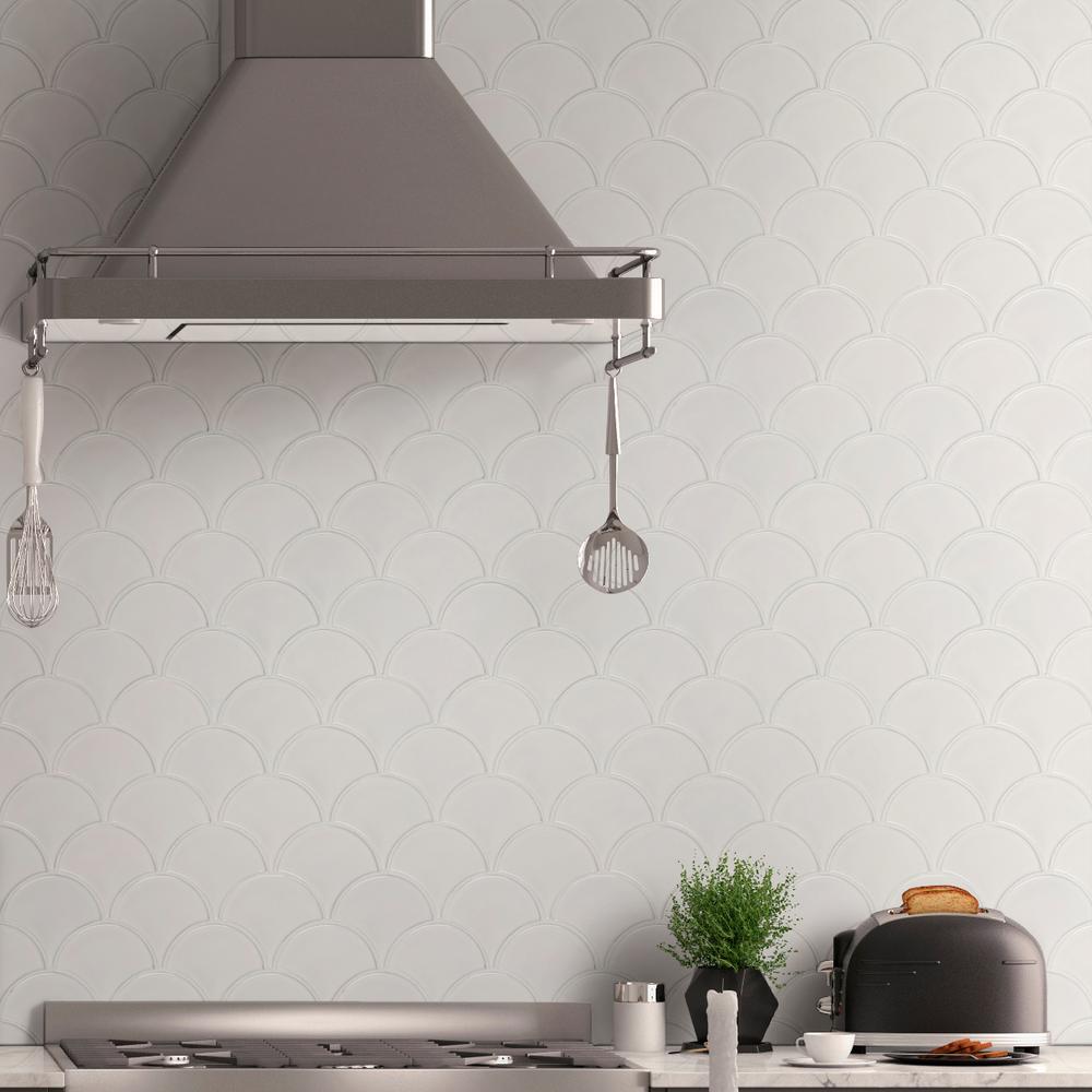 MSI’s White Glossy Fish Scale porcelain tile features a soft-toned gray color that complements nearly every design scheme. Its charming trendy pattern and glossy finish create visual interest without overpowering it’s a perfect choice for updating kitchens and baths. A welcomed addition to both homes and light use commercial spaces, use it as wall tile, bathroom or kitchen backsplash tile, or on floors or countertops.