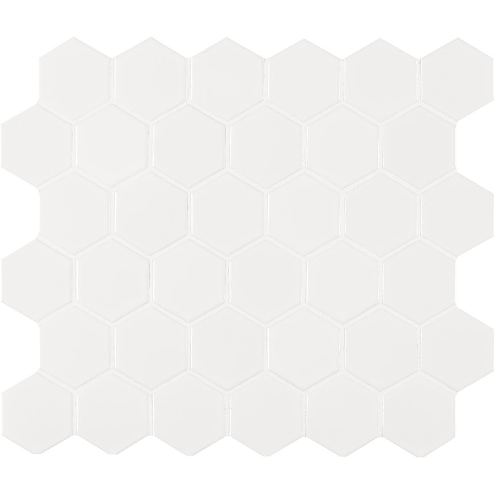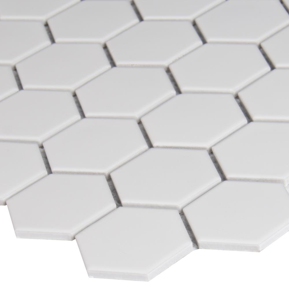 With the White Hexagon Porcelain Mosaic Wall Tile, it's easy to add a splash of contemporary styling to your decor. This attractive tile features a smooth, low sheen finish with 2 in. hexagon arrangement of tile pieces on 10.875 in. x 12.625 in. mesh sheet that makes installation a much easier process. Elegant white shades of this porcelain create a distinct pattern for various install projects in bathrooms, kitchens and other residential or commercial spaces.