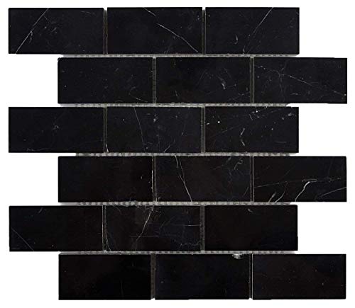 Nero Marquina Black Marble Brick Mosaic Tile 2'' X 4'' Polished