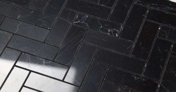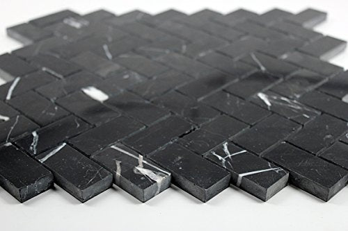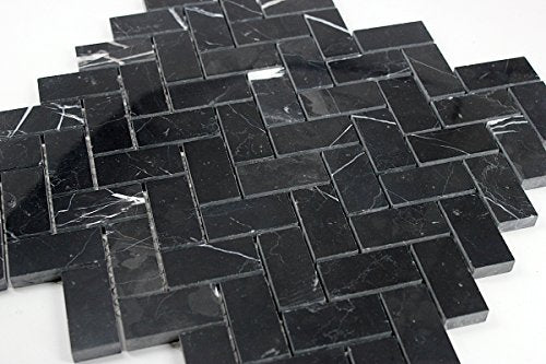 Blackstone Nero Marquina 1" x 2'' Herringbone polished marble mosaic tile from Stone Tile Mosaics helps achieve a contemporary or classic look when incorporated with our Carrara marble tile collections. Our Nero Marquina marble tiles, mosaics and trims in different sizes will meet any design challenge. These mosaics and tiles are great when used in conjunction with White Carrara marble collections or it can simply be used as a standalone design for walls, backsplashes, countertops and residential floors.
