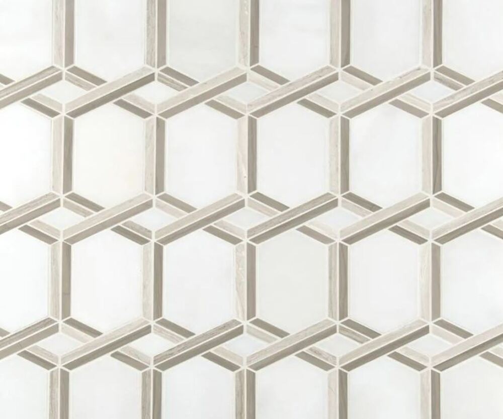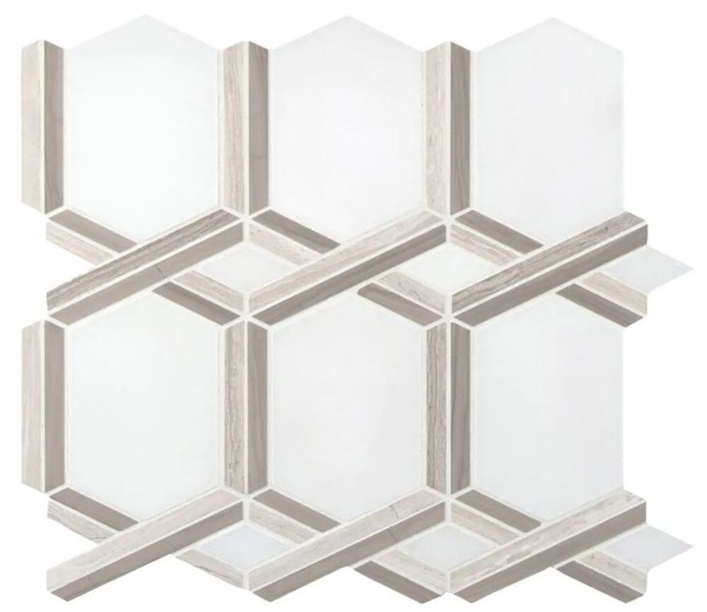 Pedemonte White Athens Grey Hexagonal Pattern Marble Floor and Wall Mosaic Tile for Bathroom Shower, Kitchen Backsplash, Accent decor, Fireplace Surround