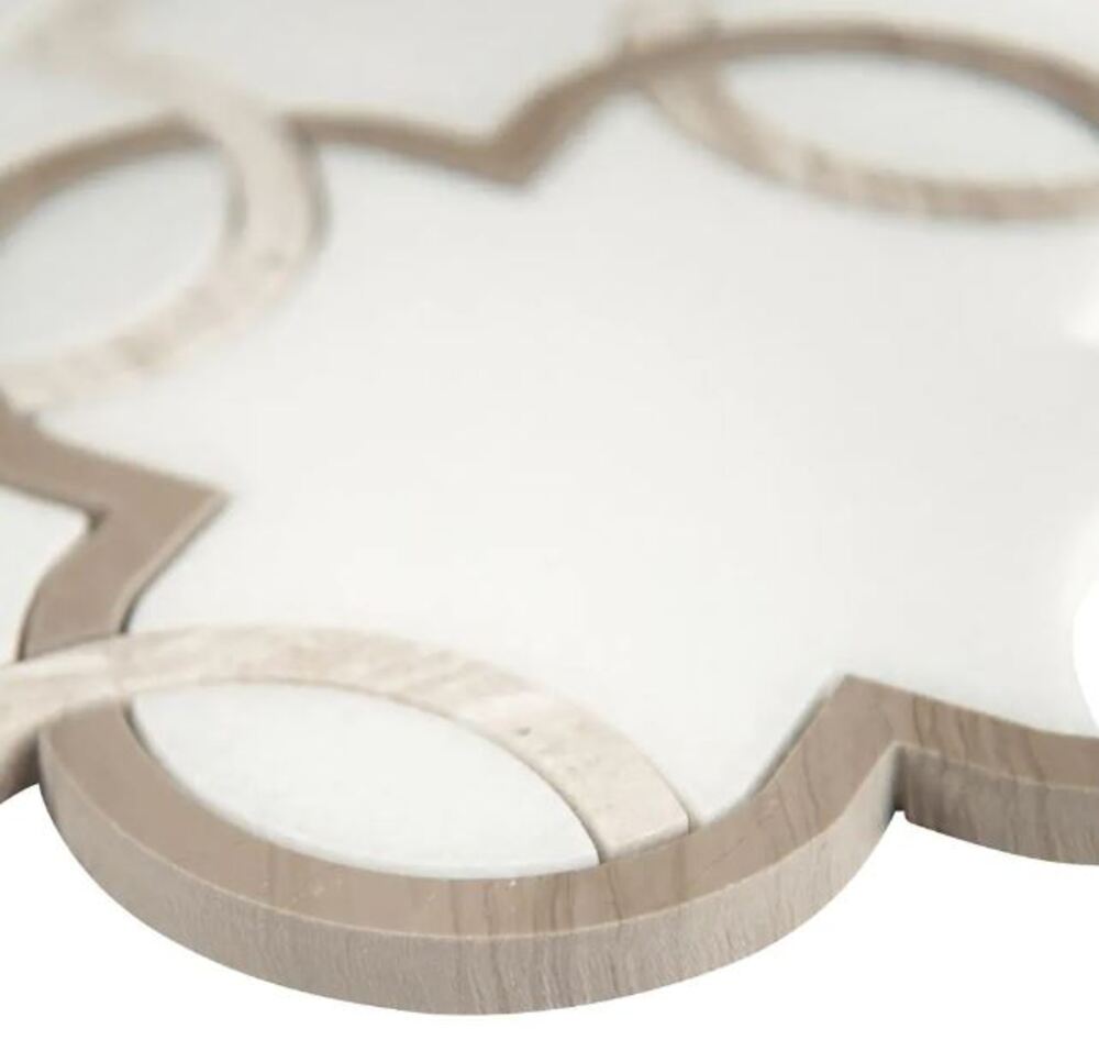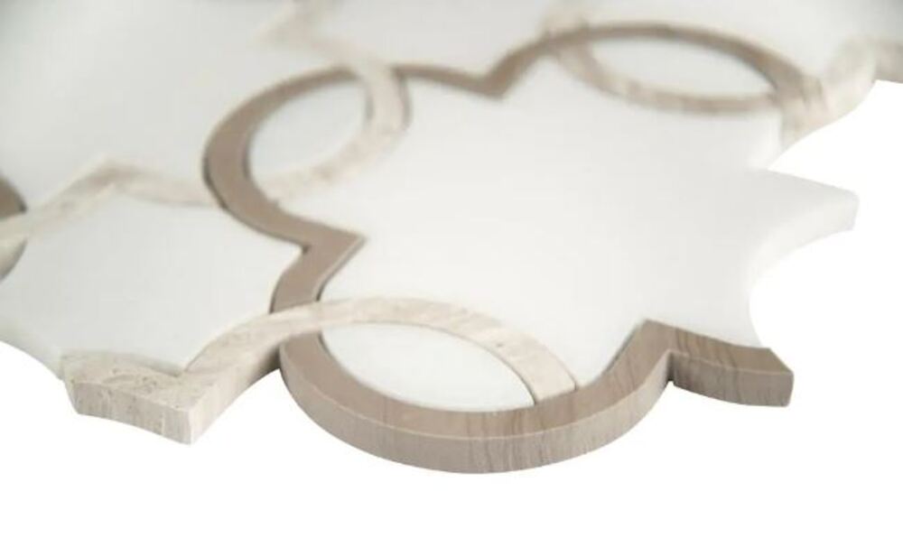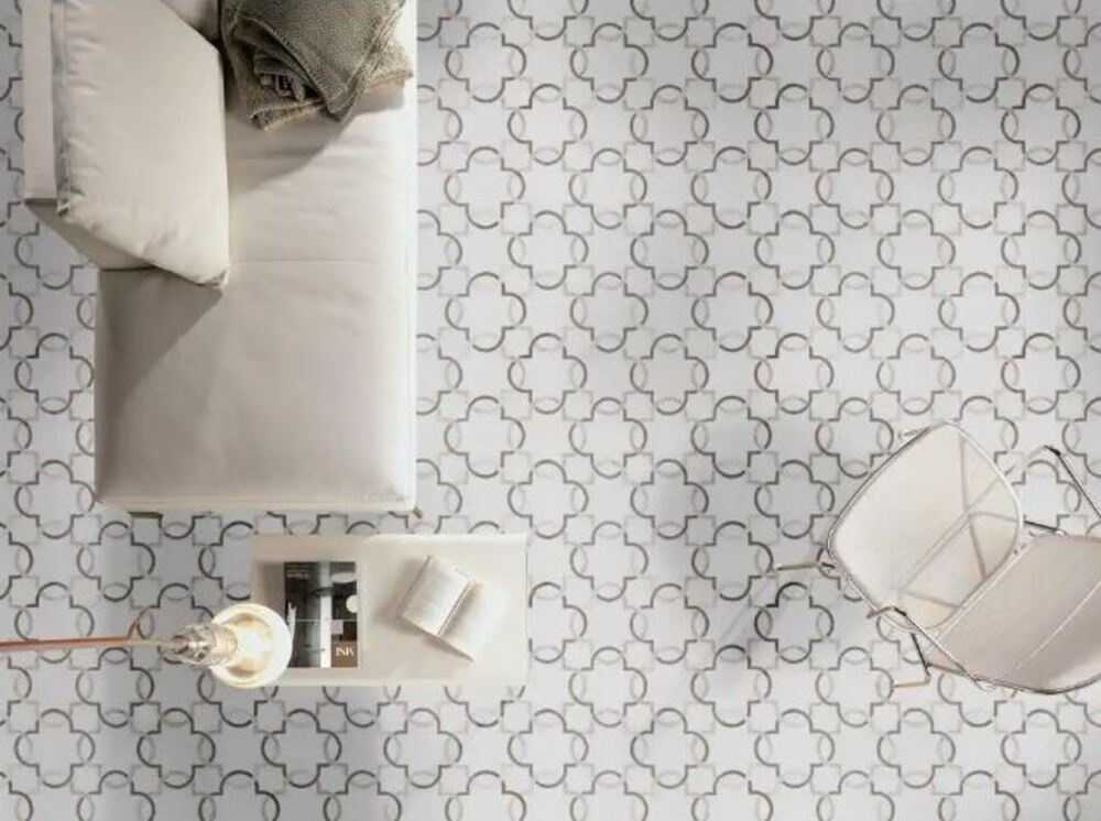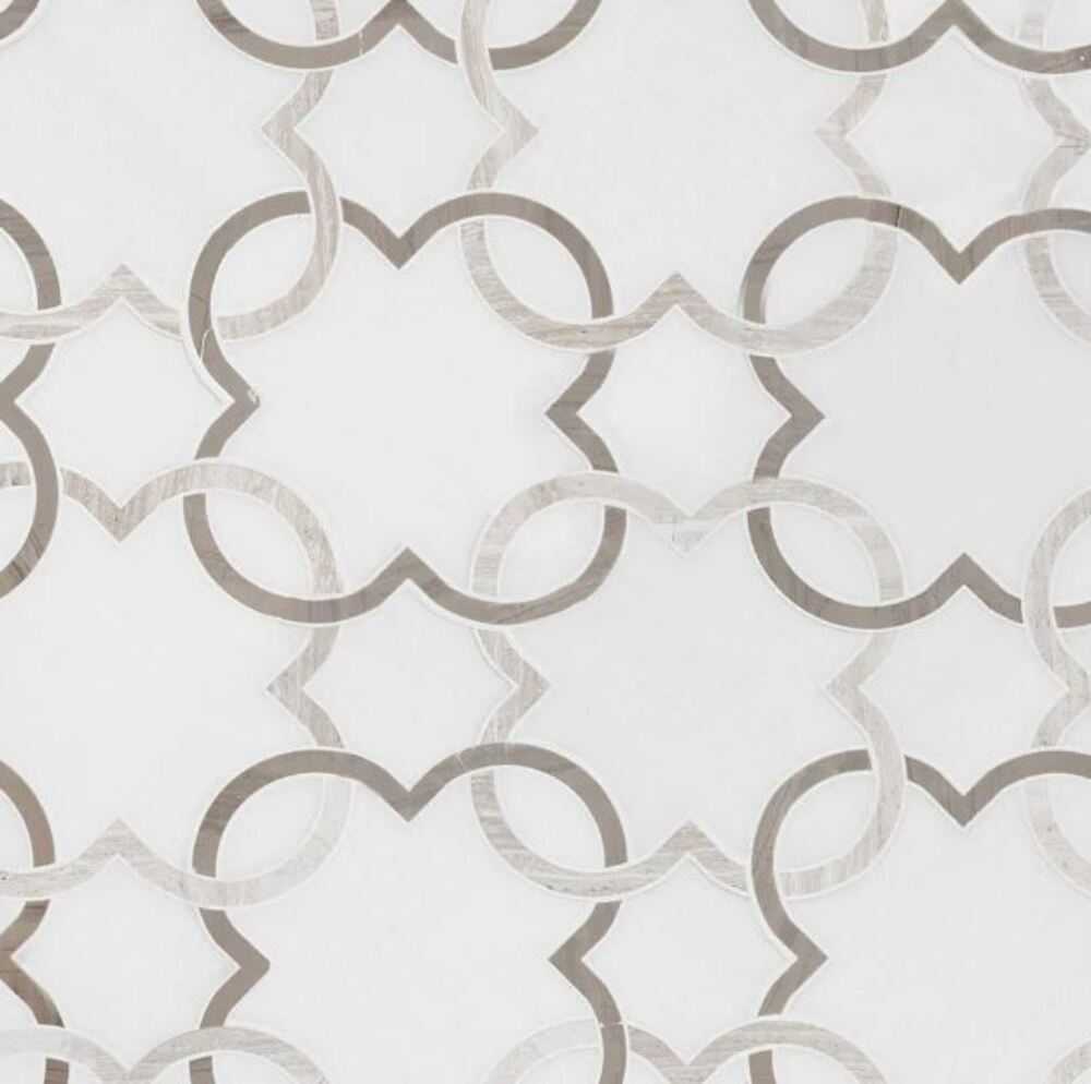 Quattuour Leaf Geometric White with Athens Grey Waterjet Marble Floor and Wall Tile for Bathroom, Kitchen Backsplashes, Accent Wall, Fireplace Surround