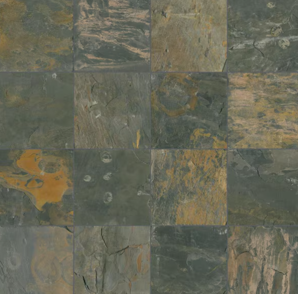 Transform your interiors with the Tenedos Rustique Earth Gauged Natural Slate Tile, a celebration of authentic stone beauty and warm, organic tones. Each 12" x 12" square tile showcases a unique blend of gold, gray, brown, and charcoal hues, reflecting the natural variation and timeless charm of genuine slate. With its textured surface and low-sheen finish, Rustique Earth enhances any space with depth, character, and durability.