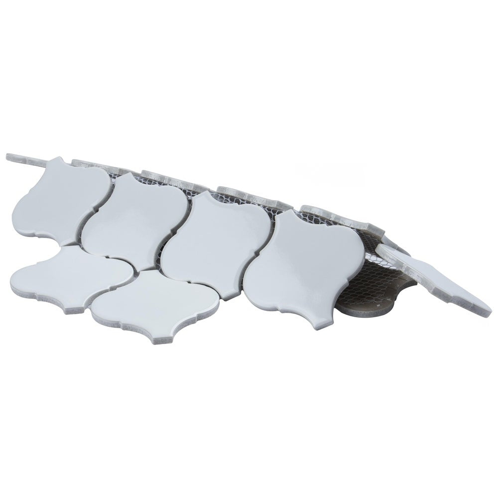 Santorini White Lantern Porcelain Glossy Mosaic Wall Tile for Kitchen Backsplash, Bathroom Shower, Pool Tiles by Tenedos (Box of 10 Sheets)