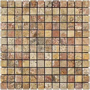 This beautiful Scabos Travertine 1x1 Mosaic Tile is a perfect choice for kitchen backsplashes, bathroom showers and fireplaces. Its tumbled finish can beautifully accent any décor. Durable and easy to maintain, it is a great addition to any home.
