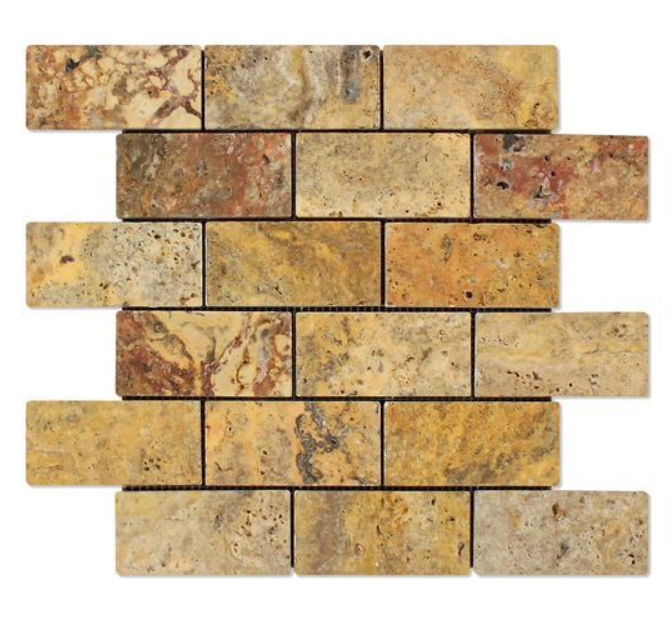 Scabos Travertine 2x4 Tumbled Mosaic Tile