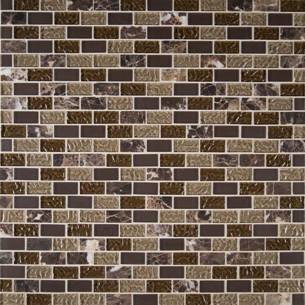 Bring natural beauty and refined elegance into your space with this Glass and Stone Blend Mosaic Tile in Brown, Cream, and Beige Tones. Featuring a harmonious combination of crackled glass pieces and rich Emperador Dark marble, this mosaic tile delivers a warm and inviting feel perfect for both classic and contemporary designs. The natural stone’s veining combined with the textured crackled glass adds depth, character, and a touch of luxury to any installation.