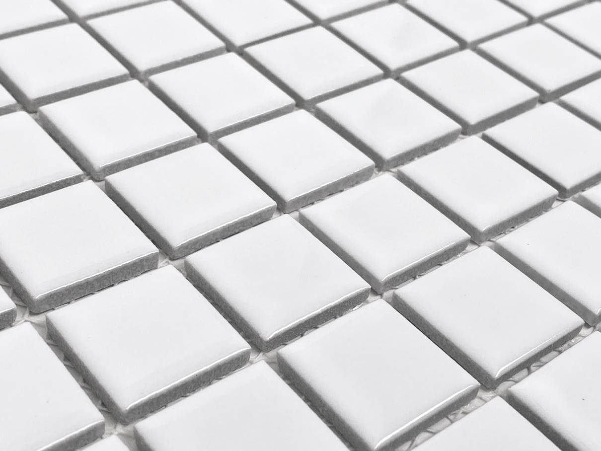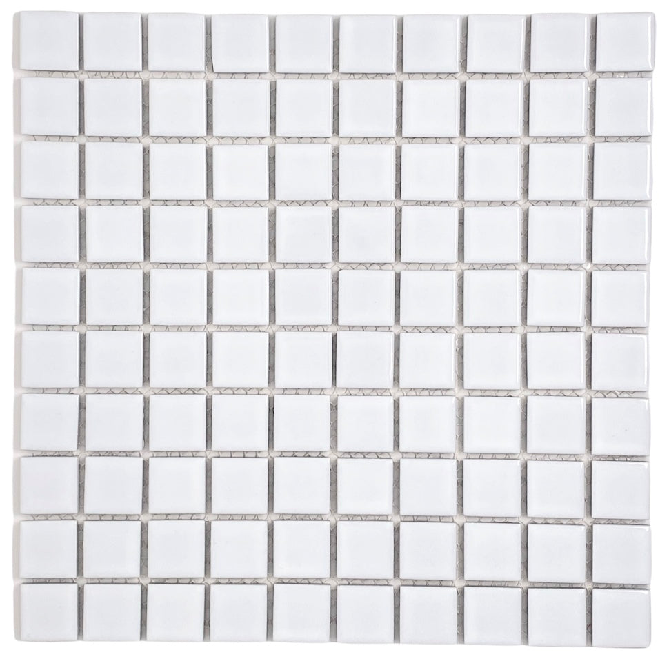 This porcelain mosaic tile is perfect for adding a classic, timeless touch to any bathroom, pool, shower, wall, or entrance area. The square shape is a contemporary twist on traditional tile, and the bright white hue ensures a stylish yet versatile design. Durable porcelain construction stands up to everyday use, making it a practical and long-lasting choice.