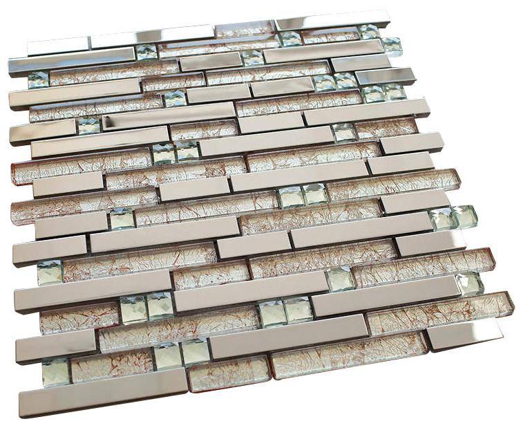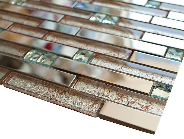 Sheet Size: 12 3/8" x 11 3/4" x 3/8"Tile Style: RandomType: Glass, stainless steelFinished: Glossy & shinnyHTCDS1