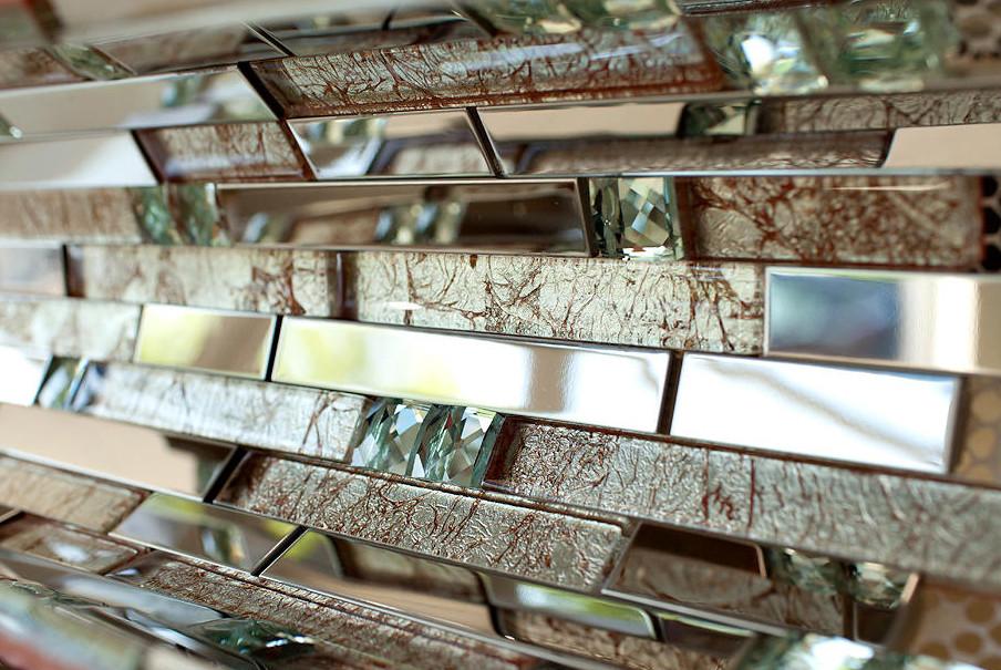 Stainless Steel and Pinky Luxury Diamond Glass Mosaic Tiles - Tenedos