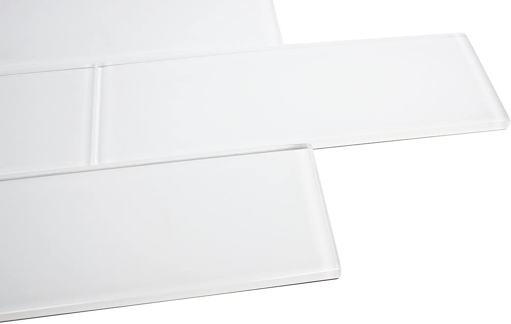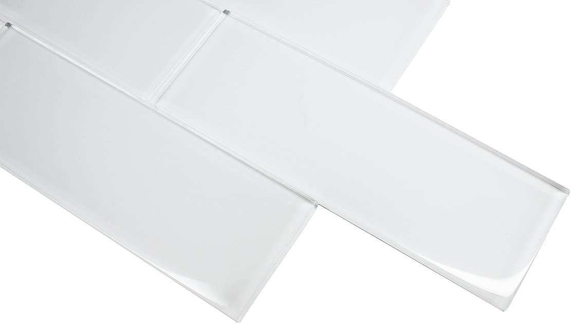 Super White Glossy - 3x9 Bright White Subway Glass Tile - Bathroom Tile & Kitchen Backsplash Tile (Price Per 3 Square Feet, 15 Pieces)