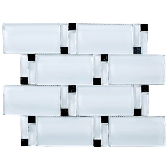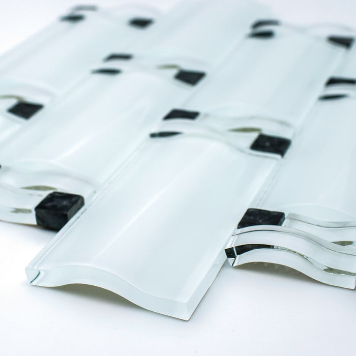 Super White Waves Mosaic Tile with Black Arched Over Size Glass Wall Tile for Kitchen, Accent Wall and Bathroom Backsplash