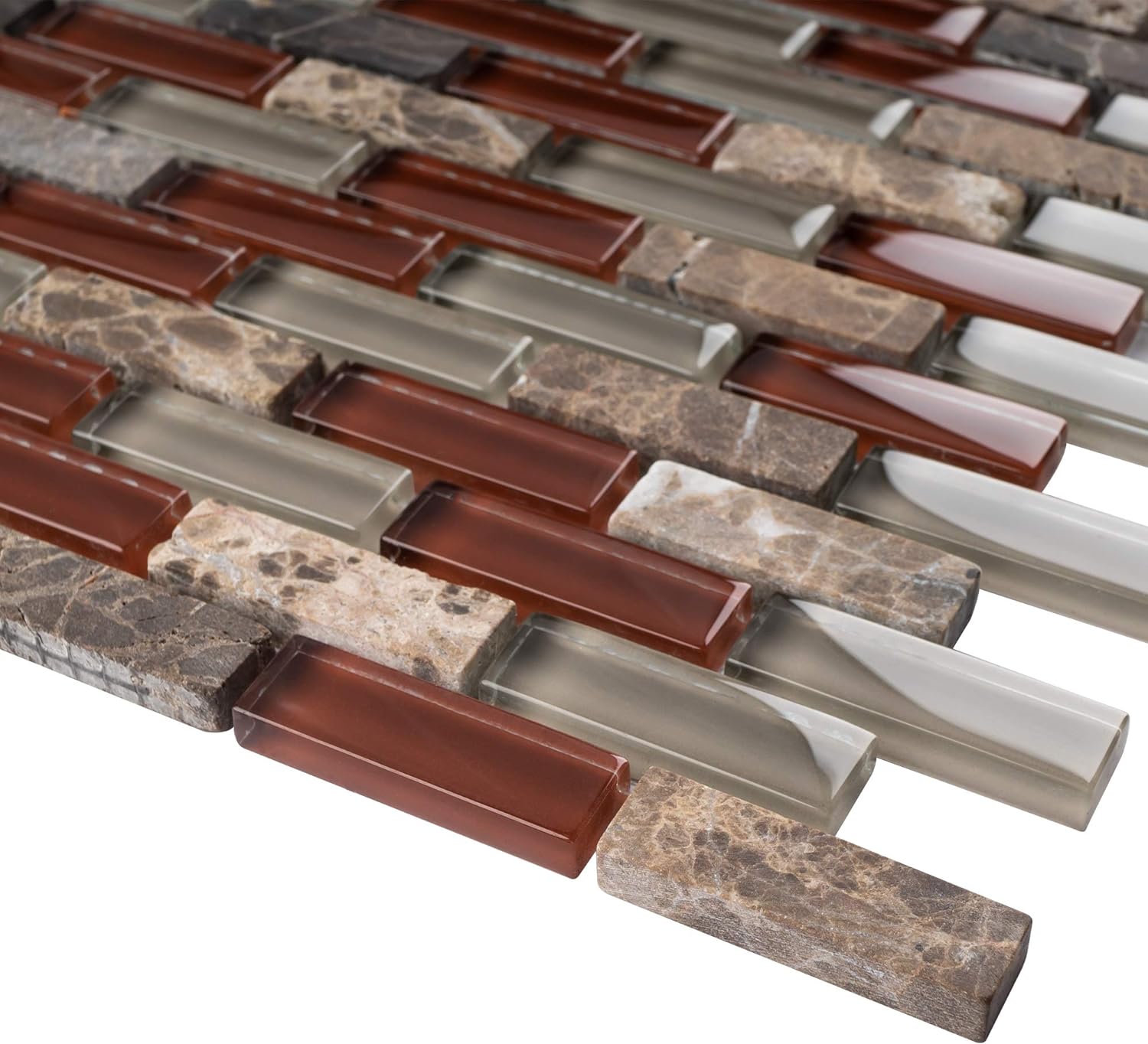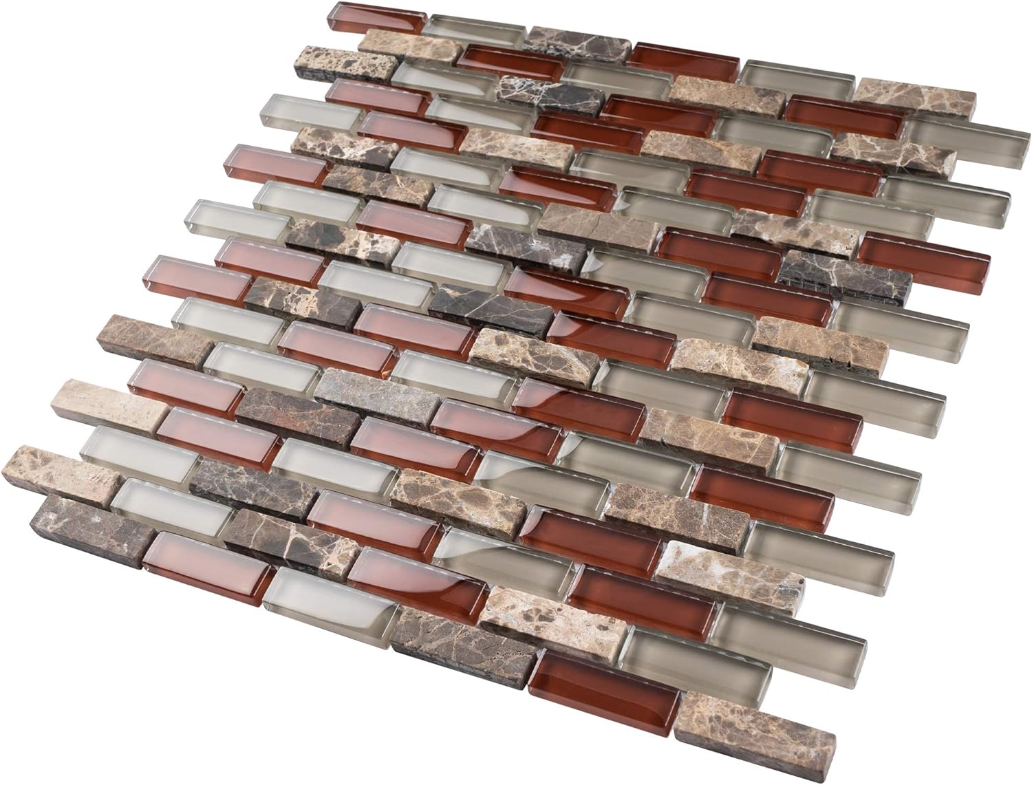 TBCDG-06 Burgundy Mix Gray Brick Glass Mosaic Wall Tile