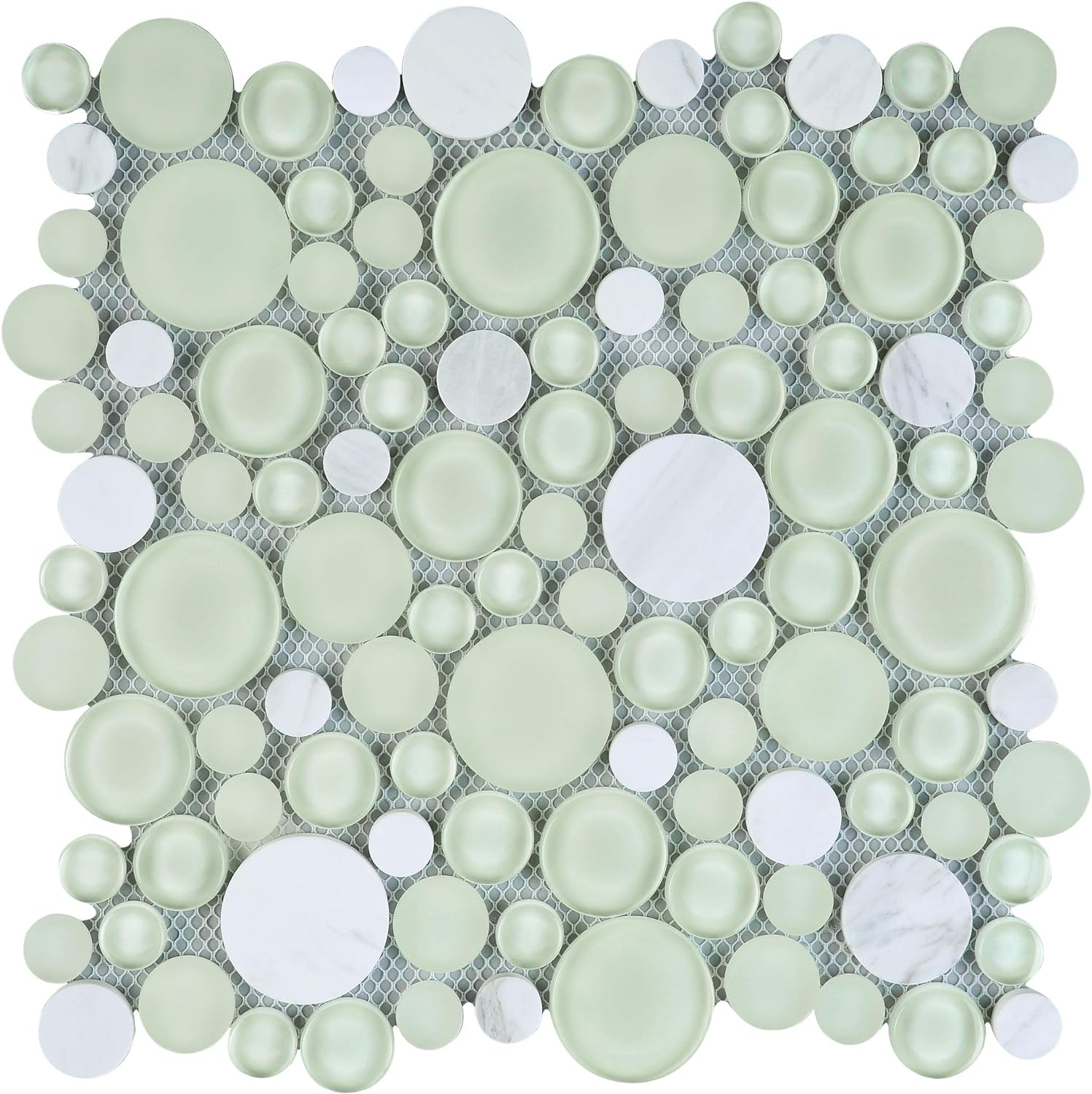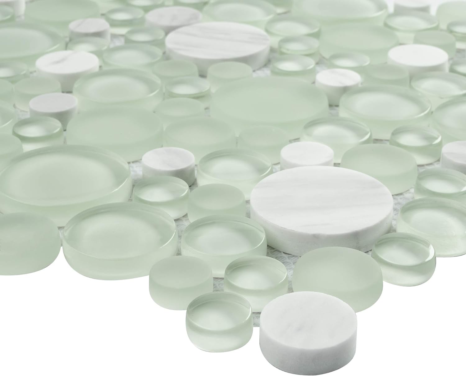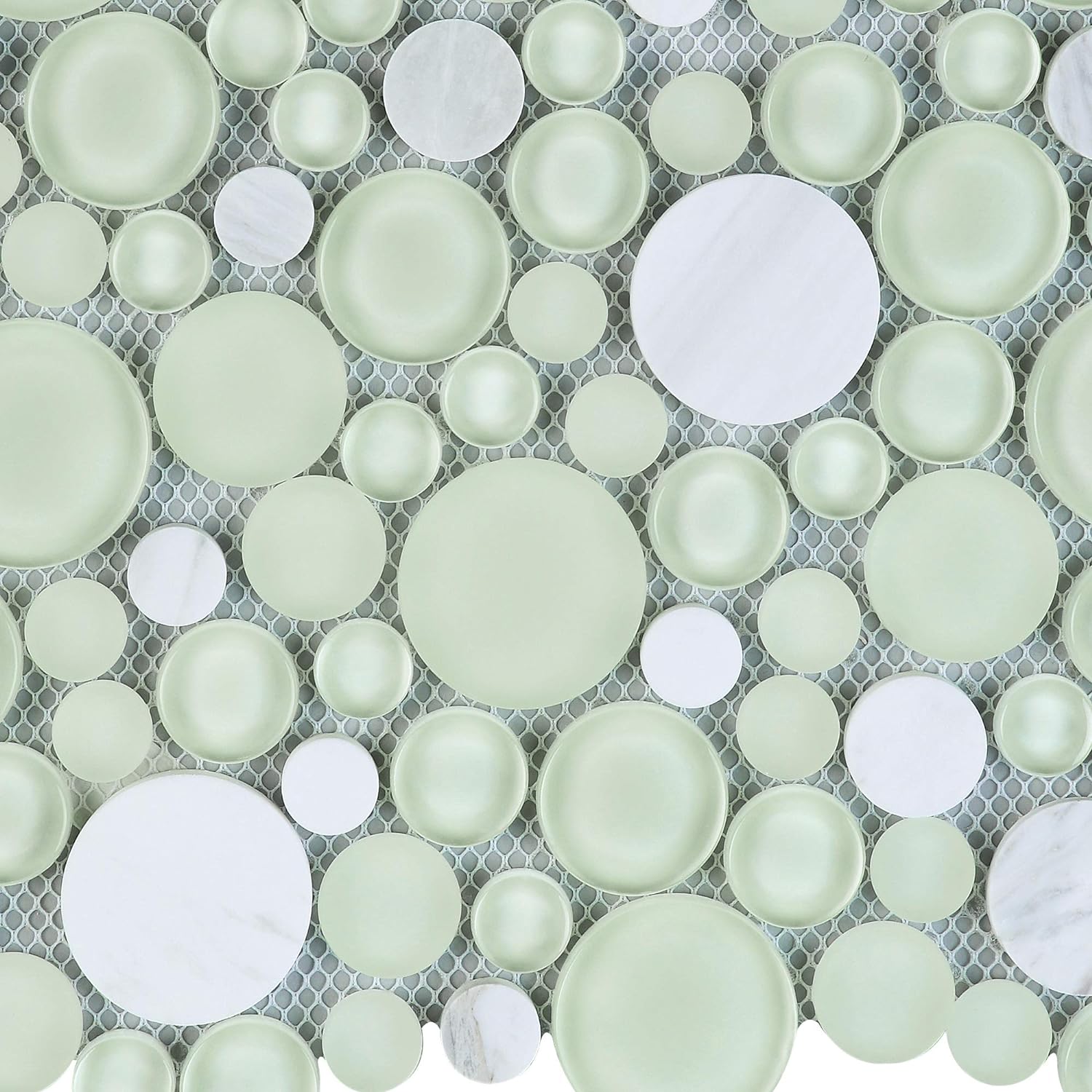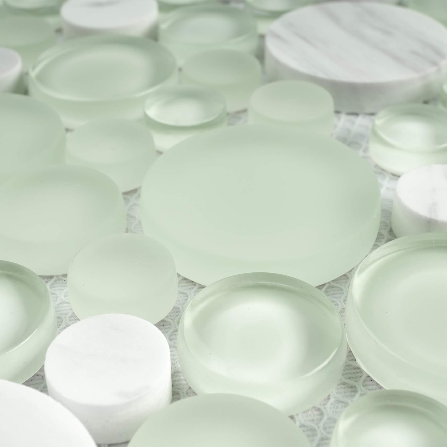 TBUBWG-01 Random Circle Glass Mix Stone Mosaic wall Tile in Mint Green and White