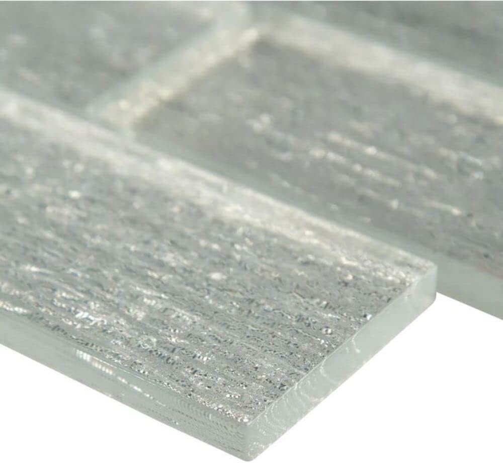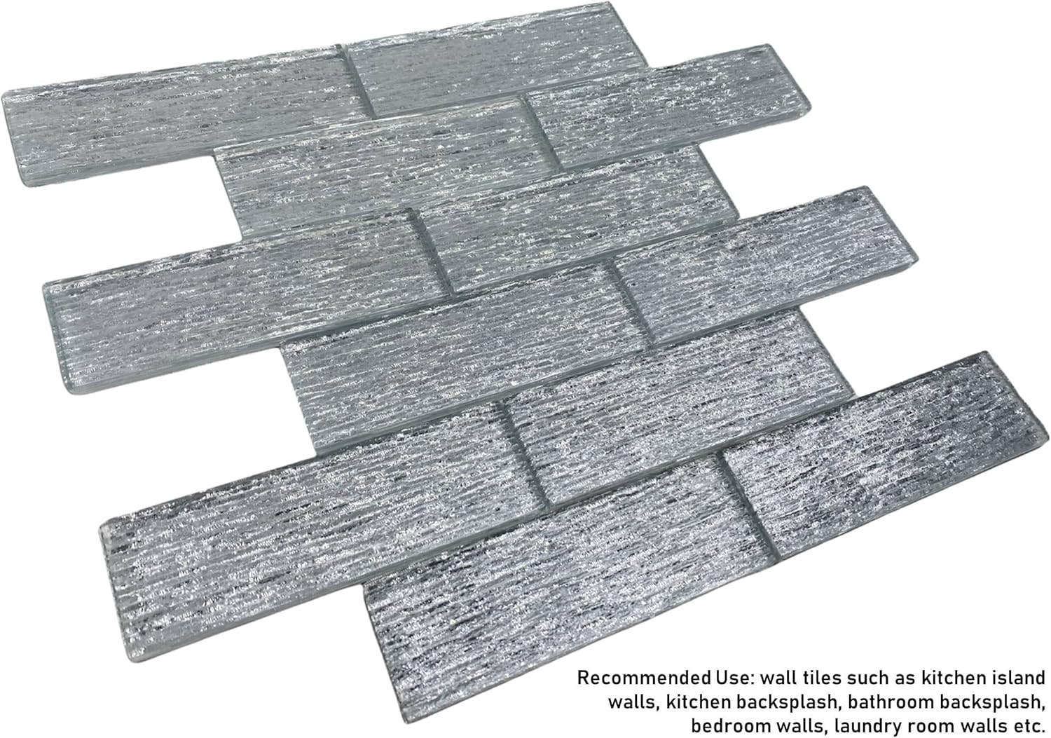 Enhance your interior design with the luxurious elegance of the Glitter Silver Decorative Glass Accent Panel – 2x6 Textured Brick Design – 1 Sheet. Each mesh-mounted sheet measures 11.68" x 11.68", covering approximately 1 square foot, making it perfect for small projects, accent areas, or sample purchases. The brick pattern features individual 1.875" x 5.75" glossy glass bricks that reflect light beautifully, creating a sparkling and modern visual effect. Crafted from high-quality glass, this accent panel offers outstanding durability, water resistance, and easy maintenance, ensuring its stunning appearance lasts for years. The glossy finish adds depth and brilliance, while the silver and gray tones provide a sophisticated and contemporary aesthetic that complements a wide variety of design styles. Its simple glue-down installation makes it ideal for both DIY enthusiasts and professional installers. Whether used on kitchen islands, backsplashes, bathroom walls, bedroom accent walls, laundry rooms, or other decorative spaces, the Glitter Silver Decorative Glass Accent Panel brings a touch of luxury and timeless beauty to any interior. The unique glitter texture adds a shimmering effect that transforms ordinary walls into elegant, eye-catching focal points perfect for both modern residential and upscale commercial environments.