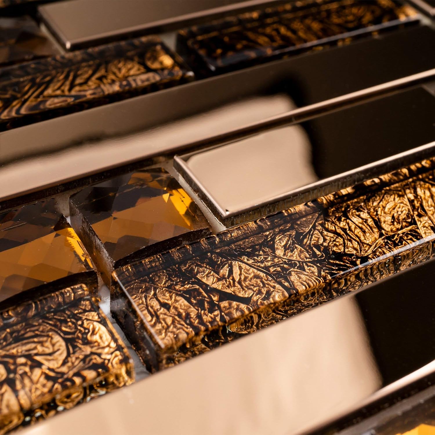 This premium mosaic combines warm brown hues with sleek metallic elements, creating a contemporary design that complements both residential and commercial spaces. Its durable glass and stainless-steel construction ensures long-lasting beauty with minimal maintenance. Whether you're updating your kitchen backsplash or adding a decorative touch to your bathroom, this versatile tile sheet brings sophisticated charm to any project.