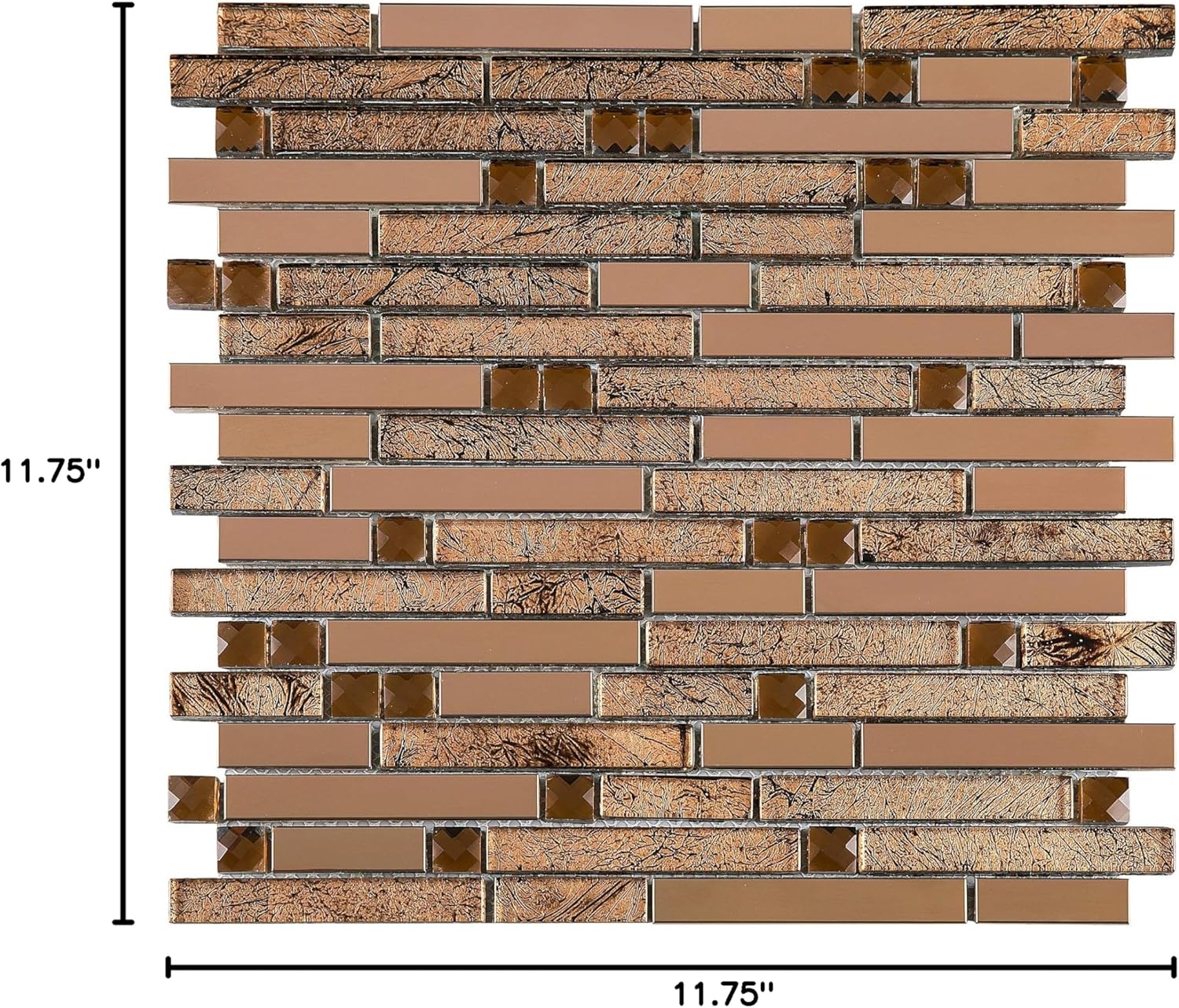 Elevate your interior design with this stunning brown-toned mosaic tile, blending glass, crystal, and stainless steel into a modern statement piece. Each sheet measures 11 3/4" x 11 3/4" with a thickness of 3/8", providing an elegant balance of texture and shine. The square-shaped tiles are carefully mounted on a mesh backing, making installation effortless for kitchen backsplashes, bathroom walls, or accent features.