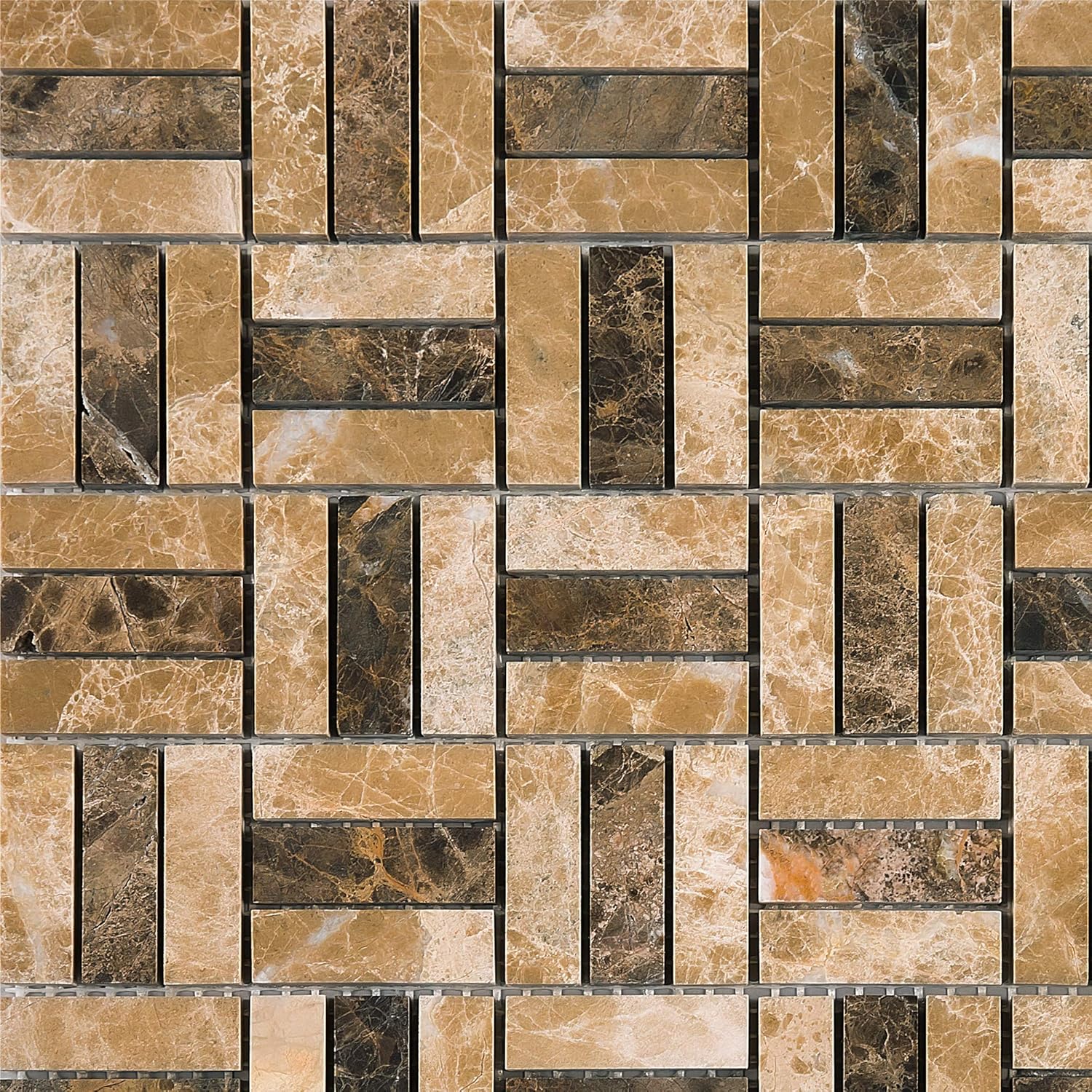 Elevate your space with the natural elegance of our Brown & Beige Woven Marble Mosaic Tile, crafted from luxurious Crema Marfil and Emperador marble. Each sheet features a beautifully interlaced design that blends warm beige and rich brown tones, creating a timeless look suitable for a variety of interiors.