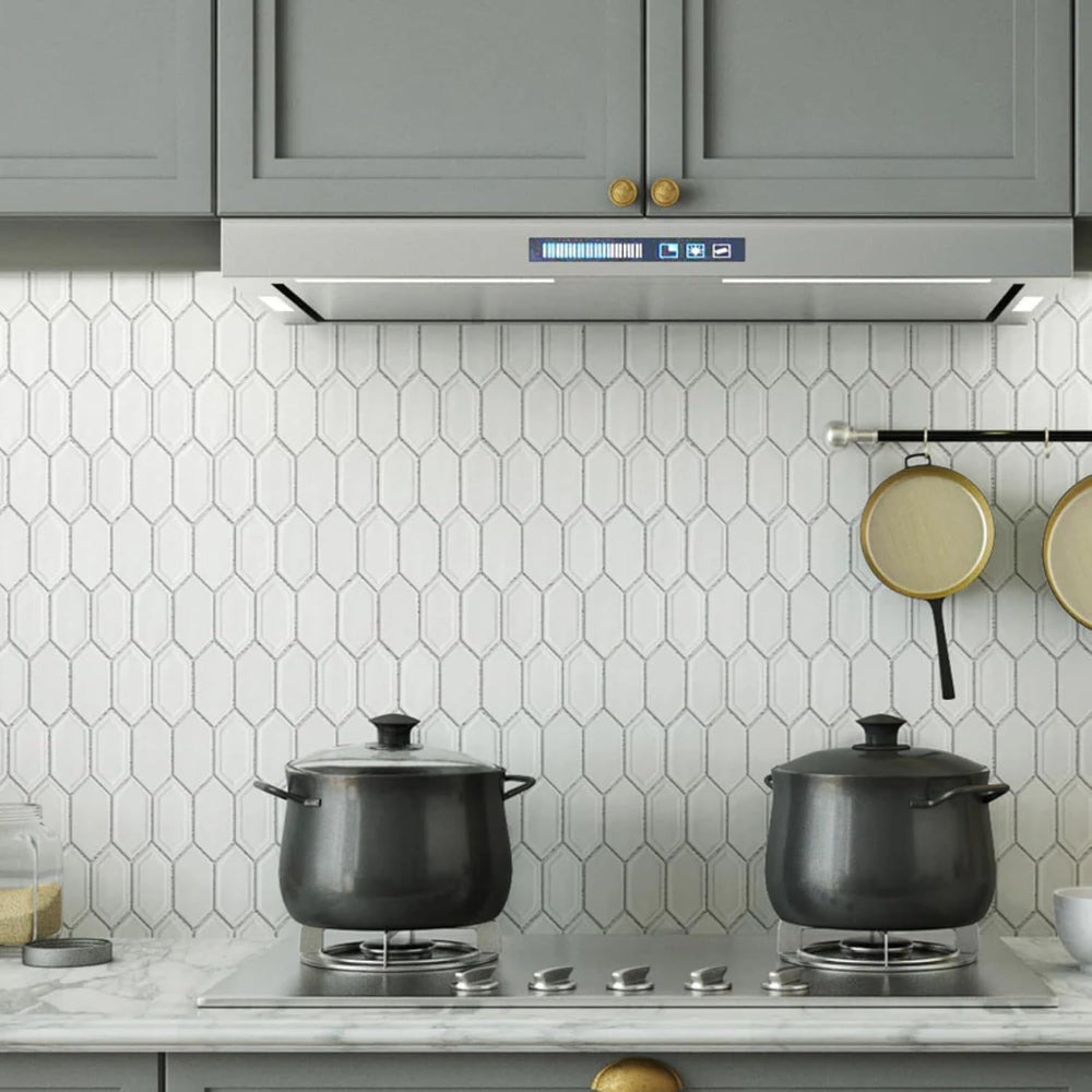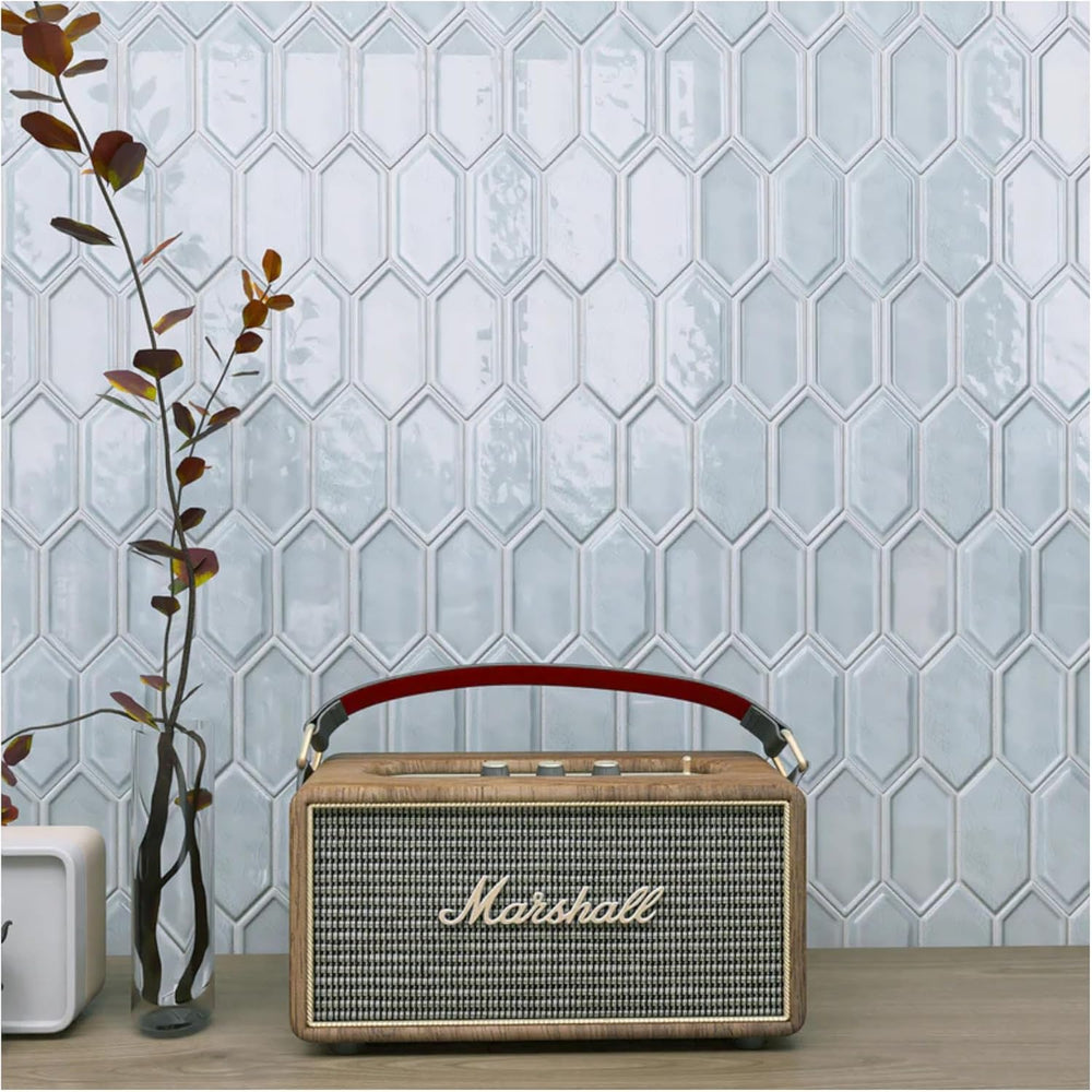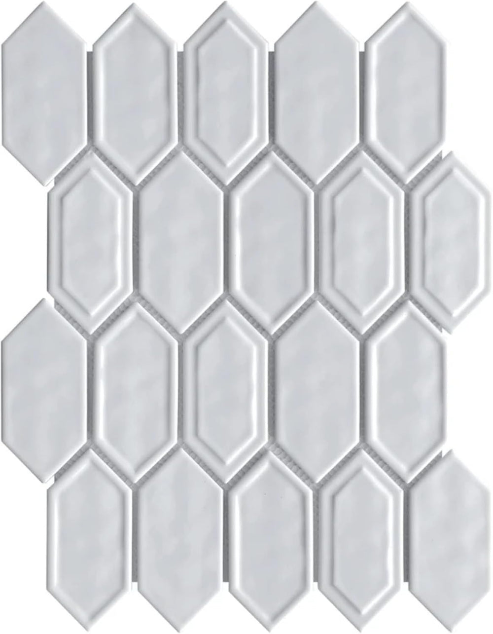 Elevate your interiors with the refreshing elegance of the Tenedos White Picket Glass Mosaic Tile, a modern twist on a classic design. Featuring an elongated hexagonal picket pattern, these glossy aqua glass tiles create a sleek and sophisticated look that enhances any room. Each sheet measures 13.3" x 10.2" and showcases a brilliant aqua glossy finish that reflects light beautifully, bringing a vibrant, spa-like atmosphere to kitchens, bathrooms, and living spaces. Crafted from premium glass, this mosaic is not only visually stunning but also durable, stain-resistant, and easy to maintain. The unique dimensional surface adds depth and texture, creating visual interest on backsplashes, shower walls, or accent features. Its versatile design allows for multiple installation patterns, making it adaptable to both modern and transitional aesthetics. Perfect for kitchen backsplashes, bathroom walls, showers, or decorative accent walls, this aqua picket glass tile coordinates effortlessly with coastal, contemporary, or eclectic styles. Whether you’re updating a single space or undertaking a full renovation, the Tenedos White Picket Mosaic Tile delivers long-lasting beauty and functionality with a refreshing modern edge.