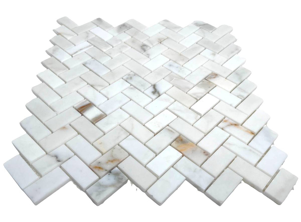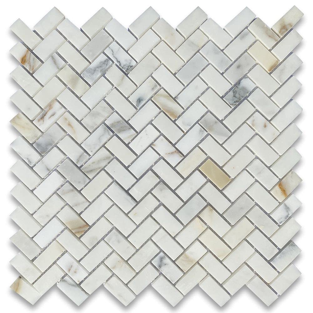 Tenedos Calacatta Gold Marble Mini Herringbone Mosaic Floor and Wall Tile Polished for Kitchen Backsplash| Bathroom Shower| Fireplace Surround