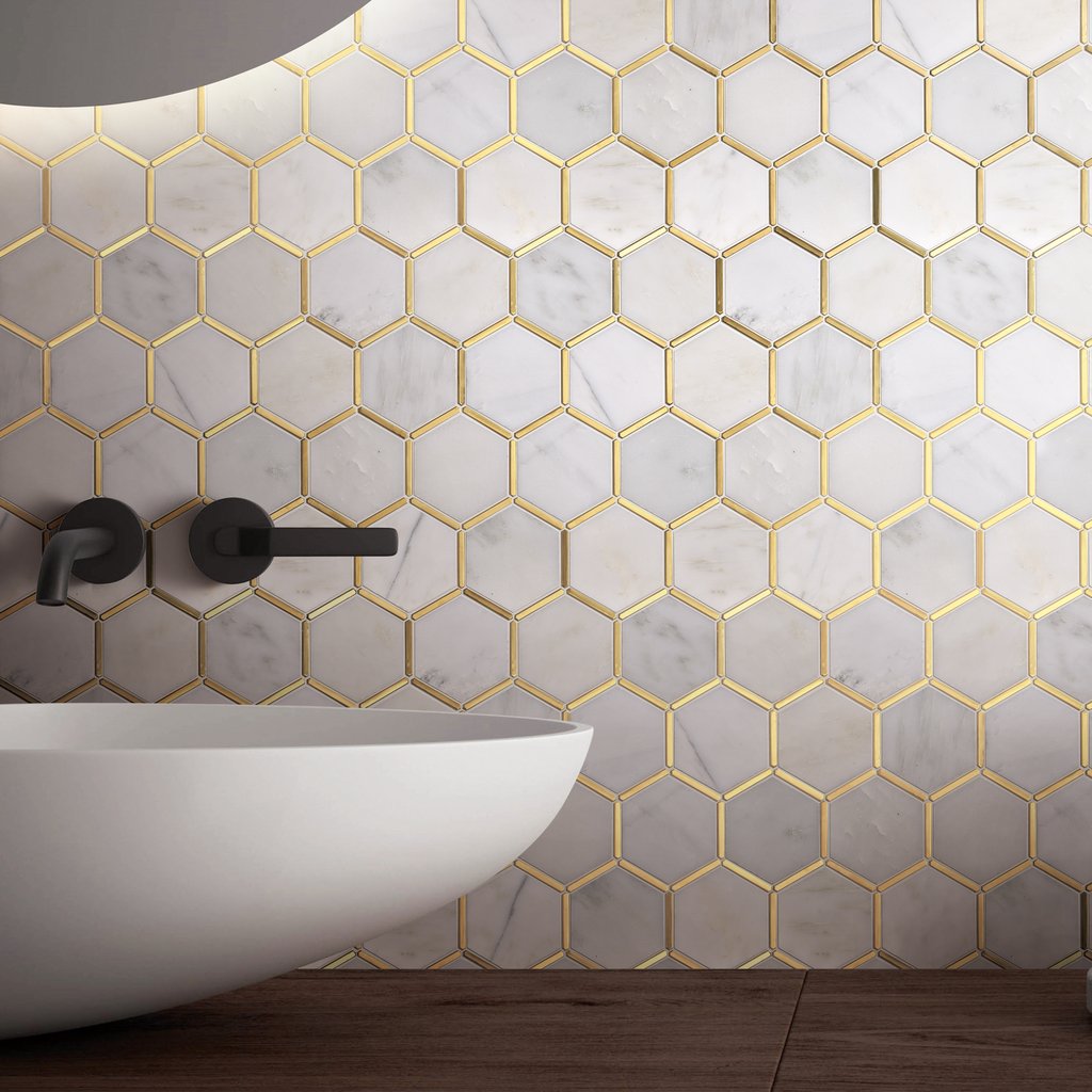 | Color | White with Grey Veins and Yellow Gold Metal |