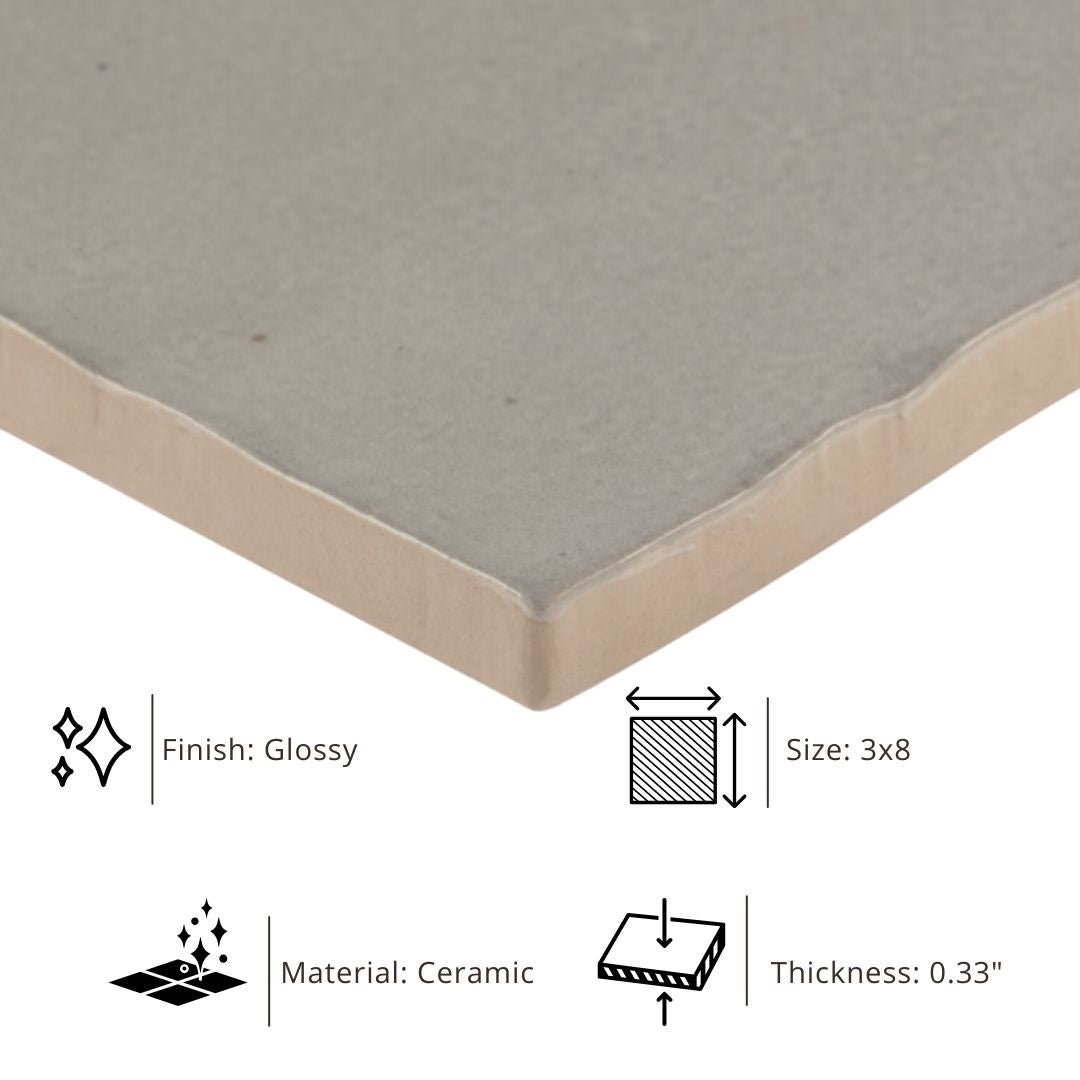 Tenedos HTC184 Ceramic Subway Wall Tile Handmade Look Glossy Glaze for Backsplash Kitchen, Bathroom Shower, Accent Wall (1, Desert Taupe)